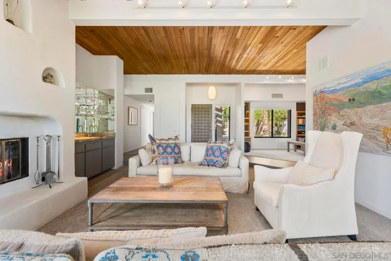 Experience the essence of desert luxury in this highly upgraded Rams Hill home, situated on the 2nd fairway of the acclaimed Tom Fazio–designed Rams Hill Golf Course in the sought-after Santa Rosa community. This meticulously maintained single level 2-bed, 2-bath home offers breathtaking panoramic views of the Santa Rosa Mountains, stunning sunrises, and the pristine golf course—all visible from the private rear patio, kitchen, living room, and primary suite. Spanning 1,765 sq. ft., the home blends timeless desert design with modern upgrades. The step-down living room features exposed wood-beam ceilings, a cozy fireplace, and a wet bar—ideal for entertaining or relaxing. The remodeled kitchen & bathrooms include leathered granite countertops, custom cabinetry and upgraded fixtures, complemented by updated flooring and new window coverings throughout. The spacious primary suite offers high ceilings, a walk-in closet, and a spa-inspired bath with soaking tub, walk-in shower, and dual vanities. Outdoor living is seamlessly integrated with patios designed for al fresco dining, entertaining, and enjoying the serene desert vistas. Additional features include owned solar, interior laundry, a 2-car garage with storage & workshop space, and professionally landscaped grounds with citrus trees, an herb garden, and drought-tolerant plantings. Ideally located near tennis, pickleball, bocce, pools, and the Rams Hill Clubhouse, this exquisite property offers an exceptional desert lifestyle and is the the ultimate Borrego Springs retreat to enjoy year-round or as a refined vacation escape. This highly upgraded Rams Hill home has been meticulously maintained and provides breathtaking, sweeping views of the Santa Rosa mountains, stunning sunrises, and the Rams Hill Golf Course that can be seen from the private rear patio as well as the kitchen, living room and primary suite. Located in the highly sought after Santa Rosa community, this fabulous 2 bedroom, 2 bath single level home is situated on the second fairway of renowned Rams Hill Golf Course. Built in 1985 with a spacious 1,765 square feet floor plan, this gorgeous home is turnkey, with professionally designed interior, owned solar panels, interior full size laundry and a private 2 car garage with a workshop space and built-in storage. Features include upgraded kitchen and bathrooms, with leathered granite counter tops, new cabinetry, new fixtures, updated flooring and new window coverings throughout the home. The step-down living room has dramatic exposed wood beam ceilings, a cozy fireplace and a wet bar—ideal for entertaining or relaxing by the fire. The en-suite primary bedroom features high ceilings, a walk in closet, soaking tub with separate walk-in shower and a dual vanity. Indoor-outdoor living is highlighted throughout as the property has ample patio space for relaxation, entertaining and al fresco dining, all while taking in stunning views. The property has also been professionally landscaped including new citrus trees, a herb garden with a drip irrigation system and drought tolerant plantings yard space. 4604 Desert Vista Dr is ideally located and an easy walk to tennis, pickleball, Bocce ball, two-swimming pools, spa, the Tom Fazio designed golf course, and the Rams Hill Clubhouse and Restaurant. For those looking for tranquility, stargazing, golf, hiking, cycling, art appreciation, or simply to relax, this exquisite property offers an exceptional desert lifestyle and is the the ultimate Borrego Springs retreat to enjoy year-round or as a refined vacation escape.