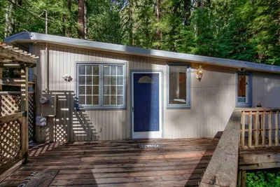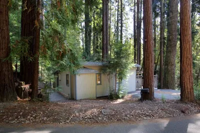 Tucked among the redwoods and set back from the road, this remodeled mountain retreat offers privacy, charm, and a remarkable story. Originally built in 1905 by early Brookdale resident Virginia Garland Ballen, a naturalist, writer and contributor to the movement that helped preserve Big Basin Redwoods, this home was known as 'The Call of the Wild' where Virginia hosted gatherings of writers, artists and early conservationists inspired by the Santa Cruz Mountains. Today the home blends that historic character with modern comfort. Vaulted ceilings, skylights, wood floors and a stone hearth create a warm and inviting living space while the updated kitchen features stone countertops and modern appliances. Outdoor living is central to the property with multiple seating areas, a large entertaining deck, a hot tub beneath the redwoods and a detached studio ideal for an office, art space, or guest overflow. The fully fenced property offers parking for multiple vehicles and a seasonal babbling brook that adds to the peaceful setting. This move-in ready home offers a rare blend of history and comfort just a short drive to Boulder Creek, Santa Cruz, the beaches, and hiking in Big Basin and Henry Cowell. A unique opportunity to own a piece of history in a setting that continues to inspire.