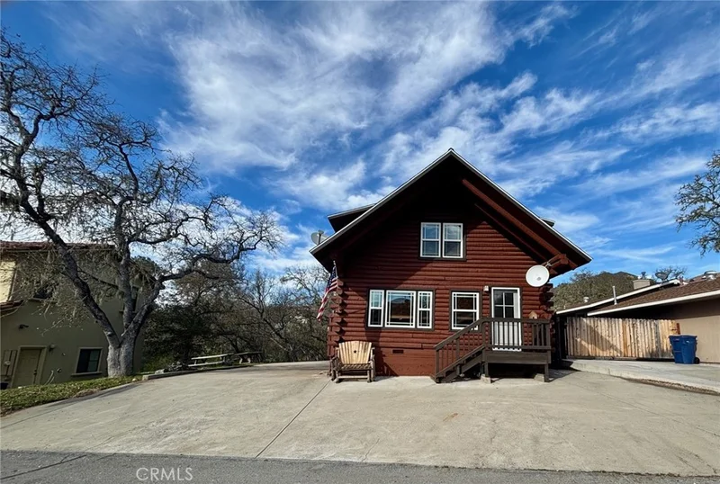 **Charming Oak Shores Log Cabin Retreat at Lake Nacimiento!** Nestled at the end of a quiet cul-de-sac in the desirable Oak Shores Community, this beautifully updated 2-bedroom, 2-bath log cabin captures the true Lake Nacimiento lifestyle. The property offers abundant level parking with ease of backing in boats, trailers, and all your lake toys—perfect for weekend getaways or full-time living. Inside, enjoy new flooring, fresh paint, updated bathrooms, and an upgraded kitchen with new appliances. The main entry level features the kitchen, dining area, and a full bathroom, while cozy wood-burning fireplaces in the living room and spacious upstairs bedroom create the perfect mountain-lodge ambiance. Step out onto the expansive back deck off the kitchen and take in gorgeous oak-studded greenbelt views—ideal for entertaining or relaxing after a day on the lake. This cabin delivers a year-round getaway feel in one of Lake Nacimiento’s most sought-after gated communities. Furnishings negotiable.