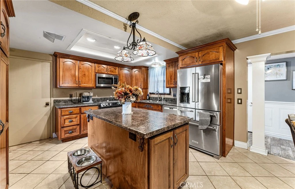Beautifully maintained 4-bedroom, 2-bathroom home ideally located in Brea within the highly desirable Fullerton Joint Union High School District, home to the prestigious Troy High School Magnet Program. This inviting residence offers a functional and spacious layout designed for comfortable everyday living. Recessed lighting enhances the bright and welcoming atmosphere throughout the home, creating a modern yet warm ambiance. Dual-pane windows provide energy efficiency while helping maintain a peaceful indoor environment. The heart of the home features a beautifully designed kitchen with solid maple cabinetry, rich wood tones, abundant storage, and a spacious center island—perfect for meal preparation and gathering. The generously sized dining area provides an ideal setting for hosting and everyday dining, while durable tile flooring adds both style and practicality. The home is equipped with a VRV dual AC system, offering efficient climate control throughout. The system is paired with a Daikin smart thermostat, providing convenient and customizable temperature management. Step outside to a beautifully landscaped front yard featuring artificial turf, delivering impressive curb appeal with minimal maintenance. Conveniently situated near local schools, this location offers excellent accessibility. Located approximately 3 miles from the Brea Mall, enjoy shopping, dining, and entertainment, along with an abundance of nearby restaurants and everyday conveniences. Additional nearby attractions and destinations enhance the overall lifestyle appeal of the home. A home that truly blends comfort, functionality, and prime location.