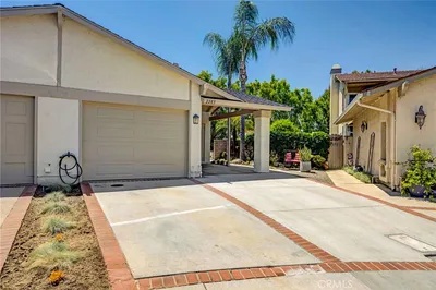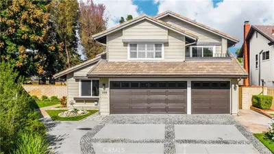 Situated on a peaceful cul-de-sac in the heart of Brea, this charming 2-bedroom, 2-bathroom home offers 1,168 square feet of inviting living space. As you step inside, the family room welcomes you with a warm fireplace, exposed wooden beams on the ceiling, and soft recessed lighting that enhances the cozy ambiance. Moving seamlessly into the dining area, you’ll find an open-concept layout that connects effortlessly to both the kitchen and family room. A new, expansive glass slider provides a stunning view of the back patio, letting in natural light and extending the indoor-outdoor flow. The kitchen is thoughtfully designed with custom cabinetry, sleek granite countertops, and built-in appliances, including a microwave and a wine/drink fridge—perfect for entertaining. On the main floor, a beautifully remodeled three-quarter guest bathroom features a stylish shower, adding both convenience and elegance. Heading upstairs, two bright and airy bedrooms offer ceiling fans for comfort. They share a renovated full bathroom, designed with tasteful finishes that elevate the space. Step outside to the backyard, where a low-maintenance cement patio invites relaxation while offering a scenic community view—ideal for quiet evenings or casual gatherings. Parking is effortless with an attached one-car garage, complete with laundry hookups. Additionally, a covered carport and a spacious driveway provide ample room for guests. This home boasts numerous recent upgrades, including new Milgard windows, new plush carpet, fresh interior and exterior paint, a new garage door and opener, and enhanced outdoor landscaping, ensuring a move-in-ready experience. Situated near award-winning schools, top-rated restaurants, and exceptional shopping, this property offers the perfect blend of tranquility and convenience. A true gem in Brea, ready to welcome its new owners!