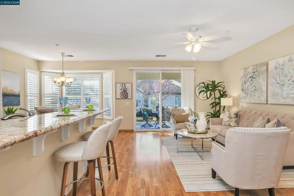 Welcome to the resort-style lifestyle of Summerset Orchards (Summerset IV), one of Brentwood’s premier 55+ gated communities. This well-maintained 2 bedroom, 2 bath home offers approximately 1,252 sqft of comfortable, low-maintenance living with tasteful updates throughout. The bright, functional layout features granite countertops, laminate flooring, and plantation shutters, creating a clean and inviting space for everyday living and casual entertaining. The floor plan includes a spacious primary suite, a comfortable guest bedroom, and a second full bath. Enjoy the benefits of living in Summerset IV, where residents have access to a clubhouse, pool and spa, fitness center, tennis and pickleball courts, billiards, and a full calendar of social activities. Conveniently located near Brentwood golf courses, parks, shopping, dining, and vibrant downtown, with easy access to the area’s farm stands and orchards. Low-maintenance living in a welcoming active-adult community.