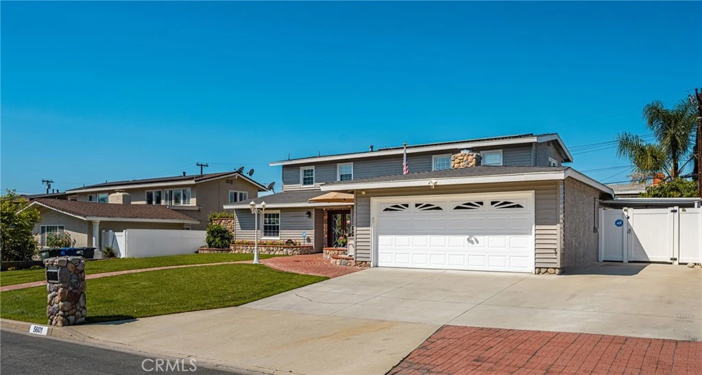 Nestled in the prestigious Los Coyotes Country Club community, this beautifully upgraded home offers nearly 2,600 square feet of well-designed living space with 4 bedrooms and 3 bathrooms. One bedroom located downstairs is currently configured as a home office and can easily be converted back with the addition of a closet. Step through the double-door entry into a warm and inviting interior featuring tile flooring and rich wood floors on the main level, with wood laminate flooring upstairs. The spacious kitchen is designed for both functionality and style, showcasing wood cabinetry, tile countertops, a center island, a large pantry, and newer stainless steel appliances, including a five-burner cooktop. The dining room features a charming wood-burning fireplace and is situated adjacent to the formal living room, perfect for gatherings, while the separate family room offers surround sound for an enhanced entertainment experience. Upstairs, the primary suite provides a relaxing retreat with a private deck and a beautifully appointed bathroom complete with a jetted tub, separate shower, and pedestal sink. A conveniently located upstairs laundry room adds everyday ease. Additional highlights include dual-pane windows, a permitted sunroom, newer HVAC system, upgraded electrical panel, whole-house water filtration system, and fresh interior and exterior paint. The outdoor space is truly exceptional. Recently remodeled front and backyard areas showcase a stunning pool and spa renovation completed just two years ago, featuring elegant brick pavers and a private covered patio. The backyard is an entertainer’s dream with a fully equipped barbecue island including a built-in grill, side burner, sink, and refrigerator. For added convenience, the property offers RV parking with 50-amp service and a solar system with a low monthly lease that will be paid off in just a few years—helping to significantly reduce energy costs. This is a rare opportunity to own a thoughtfully upgraded home in one of the area’s most sought-after communities.