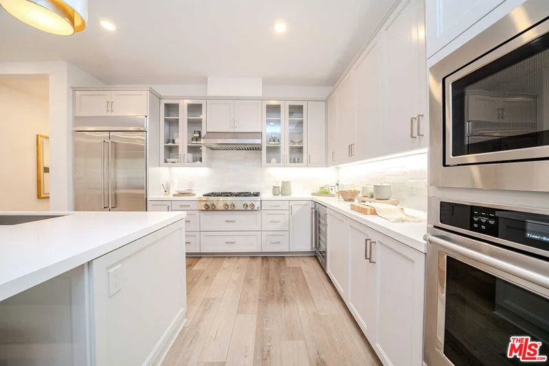 BRAND NEW modeled luxury ground-level townhouse style condominium in the Los Coyotes Country Golf Club. This elegant, luxury, and unique town house style condo features spacious and bright 3 bedrooms with 2 well-decorated bathrooms, high ceiling, direct access private two side by side car garage with custom cabinet storage, a separate laundry room with Whirlpool front load dryer and washer, central air and heat, stylish Arizona Tile Della Terra quartz counter tops with 6" backsplash, custom engineered wood flooring, Kitchen Aid appliances including 36" Gas range top, commercial style hood, 30" built in oven, 24" dishwasher, stainless KitchenAid 42" Built-In French door refrigerator, microwave, and 24" under counter wine cellar, Kohler Vault under-mount stainless steel single basin kitchen sink with Delta Essa single handle pull-out faucet, Arctic stainless food waste disposal, custom sofa, dining table, modern white kitchen cabinets, pre-wiring for electric vehicle charging station, custom mirrors & decorations and more. Two spacious bedrooms come with the custom decorations, including modern ceiling lights, mattress frames, designer window coverings and blinds, a walk-in closet, custom blinds, and custom-designed painting. Moreover, the master bath comes with a granite countertop, custom vanities, designed mirrors, frameless shower glass, Delta modern in polished chrome, a large walk-in closet with custom shelving, and more. The home comes with a chef-inspired kitchen with an oversized island to gather and entertain, an open wide floor plan upon entrance, high ceiling with energy-efficient LED recessed ceiling lights, a tankless Rheem water heater, a home technology system features my commend smart home system, including Butterfly door access, remote unit door access, lights, thermostats, water, and more. Also, the house comes with a private patio with exterior furniture and direct access to the community BBQ and recreation areas. The Los Coyotes Villas Community provides a private and gated community with 24 hr. security, Villas at Los Coyotes Country Club Dining membership, a paid-off rooftop solar panel system through SunPower Solar Company, a common recreation area including built-in BBQ, picnic tables, seating, and a resort-like gated golf course complex.