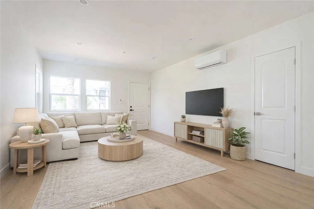 Welcome to this beautifully fully renovated 2 bed, 1 bath apartment at 1065 E Sazier Ave, Unit 102, located just minutes from downtown Burbank. This first-floor unit provides a spacious modern living with large windows and abundant natural light. The open-concept living and kitchen area features laminate flooring and a brand-new kitchen with white shaker cabinets, quartz countertops, and stainless steel appliances, including a gas stove, refrigerator, dishwasher, and microwave. Enjoy the convenience of an in-unit stackable washer and dryer and split-unit HVAC with three zones for customized comfort. The spacious bathroom is beautifully finished with large-format tile, a modern vanity with quartz counter, and a walk-in shower. Both bedrooms offer generous closet space. This unit has been completely gutted and rebuilt, including new windows, roof, stucco, electrical, plumbing, HVAC, and all interior finishes. Advertised rental rate is offered to well-qualified applicants only with strong credit, income, and rental history.