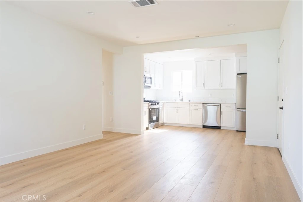 Welcome to this beautifully fully renovated 2 bed, 1 bath apartment at 1065 E Sazier Ave, Unit 202, located just minutes from downtown Burbank. This second-floor unit provides a spacious modern living with large windows and abundant natural light. The open-concept living and kitchen area features laminate flooring and a brand-new kitchen with white shaker cabinets, quartz countertops, and stainless steel appliances, including a gas stove, refrigerator, dishwasher, and microwave. Enjoy the convenience of an in-unit stackable washer and dryer and central HVAC for customized comfort. The spacious bathroom is beautifully finished with large-format tile, a modern vanity with quartz counter, and a walk-in shower. Both bedrooms offer generous closet space. This unit has been completely gutted and rebuilt, including new windows, roof, stucco, electrical, plumbing, HVAC, and all interior finishes. Advertised rental rate is offered to well-qualified applicants only with strong credit, income, and rental history.