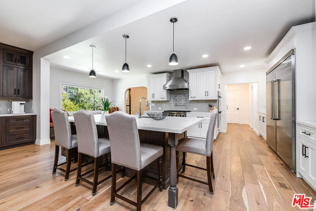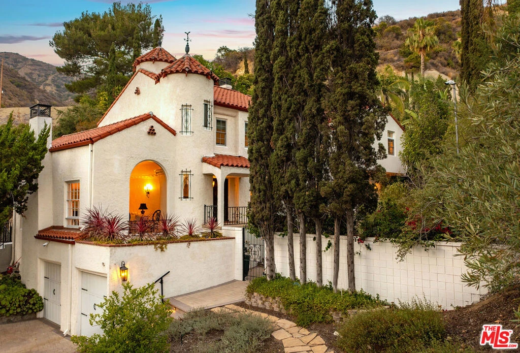 Discover your very own 1-acre private resort with this exquisite fully remodeled Mills Act 1920s Spanish-Mediterranean estate nestled at the end of a secluded cul-de-sac above Sunset Canyon. Situated on an expansive one-acre lot equipped with full acre fire shield and offering over 4,467 sq ft of elegant living space, this Mills Act-designated historical property combines timeless architectural beauty with significant property tax savings. Step inside to find grand interiors featuring an open two-story formal entry with dramatic staircase, a step-down formal living room with a soaring barrel ceiling, a large fireplace, crown molding, and wrought iron accents throughout. Natural light floods the gourmet chef's kitchen and great room, outfitted with Viking appliances, a pro-style 6-burner range PLUS 2 built-in ovens, quartz countertops, a massive island, and rich hardwood flooring. With 5 spacious bedrooms and 4 bathrooms, the layout suits both relaxing and entertaining. The romantic primary suite is a true retreat, complete with a steam shower, an oversized soaking tub, built-in cabinetry, and French doors that open to a wrought iron balcony overlooking your lush backyard. Outside, paradise awaits. Tropical, luau-inspired landscaping surrounds a sparkling pool with serene waterfalls, a fire pit, an outdoor kitchen and a covered patio, and multiple living and dining spaces all illuminated at night to create a magical private oasis. The expansive grounds include a sundeck, sports area, a three-quarter pool bath, and a large flat pad with permitted plans for an 800 sq ft ADU. Smart home upgrades, full 1 acre property fire protection shield that can be controlled remotely, full house back-up generator, 3 combined lots, and rare privacy make this an entertainer's dream and a one-of-a-kind opportunity. Located in the top-rated Burbank School District, with easy access to the 5 and 134 Freeways, this is more than a home it's a lifestyle. Come experience the rare beauty, charm, and serenity this estate offers!
