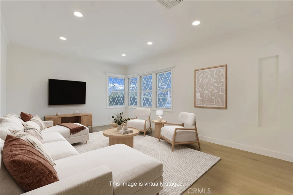 Welcome to this bright and airy 3-bedroom home, now available in a charming tree-lined Burbank neighborhood. Thoughtfully maintained and filled with natural light, the home offers a comfortable and inviting layout, featuring a functional kitchen and bathroom with granite countertops, central A/C and heat with a smart thermostat, and a convenient in-unit laundry area (washer and dryer included). The rear bedroom adds a special touch with its beautiful wood-beam vaulted ceiling. Step outside to enjoy a spacious, private enclosed patio—perfect for relaxing evenings or entertaining guests. Additional highlights include new paint and flooring throughout, recessed lighting, an EV charger, 2-car driveway parking, and plenty of street parking. Ideally located near parks, shopping, and top-rated schools, this home offers both comfort and convenience. Tenant pays all utilities. Small pet will be considered. Please note: A separate unit is located at the rear of the property and is leased independently.