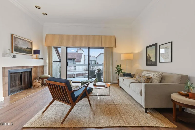 Ideally situated just two blocks from Downtown Burbank and Burbank Town Center, this private, light-filled 2 bedroom, 2 bathroom condo enjoys one of the building's most coveted TOP FLOOR locations and offers an exceptional single-level floor plan with an airy, open feel throughout.The spacious living room features a cozy fireplace and opens to one of two private balconies, creating seamless indoor-outdoor living. A separate dining area, dedicated laundry closet, and a generous walk-in closet and vaulted ceilings in the primary suite provide both comfort, style, and functionality.Additional highlights include new laminate flooring, custom window coverings, a built-in bookcase, and fresh interior paint throughout.Two assigned parking spaces add everyday convenience.Located near highly rated Burbank schools, premier shopping and dining, parks, hiking trails, Metrolink, major freeways, and Hollywood Burbank Airport, this is an exceptional opportunity to own in one of Burbank's most desirable locations.