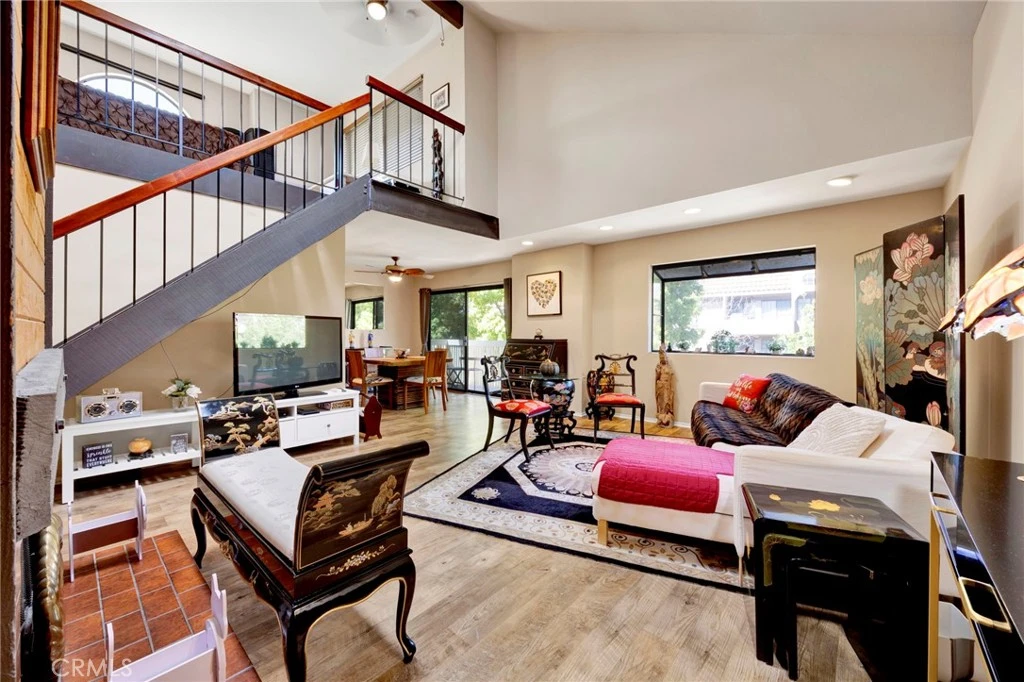A refined blend of volume, light, and architectural character, this two-bedroom, two-bath residence is defined by soaring vaulted ceilings and a dramatic lofted design that elevates the entire living experience. Natural light pours into the expansive living area, where clean lines and open space create an effortless sense of sophistication and scale. The community's late-century contemporary architecture shines with clean geometric lines and multi-level design. The main living space extends seamlessly to a private balcony, offering a tranquil outdoor retreat and enhancing the home’s airy indoor-outdoor flow. The kitchen is both functional and understated, featuring generous cabinetry, and a breakfast bar that integrates beautifully into the open-concept layout. This is the ideal space for modern living and entertaining! The primary suite provides a calm and comfortable escape, complete with its own en-suite bath and ample closet space, while the secondary bedroom is equally well-sized and versatile. Above, a gorgeous loft overlooks the living area, adding architectural depth and serving as a striking flex space, perfect for a curated home office, studio, or elevated lounge. Thoughtfully designed with an emphasis on space, light, and flow, this residence offers a rare combination of openness and refinement in one of Burbank’s most desirable and centrally located neighborhoods and is an excellent opportunity to own in a centrally located Burbank neighborhood with proximity to major studios and employment hubs.