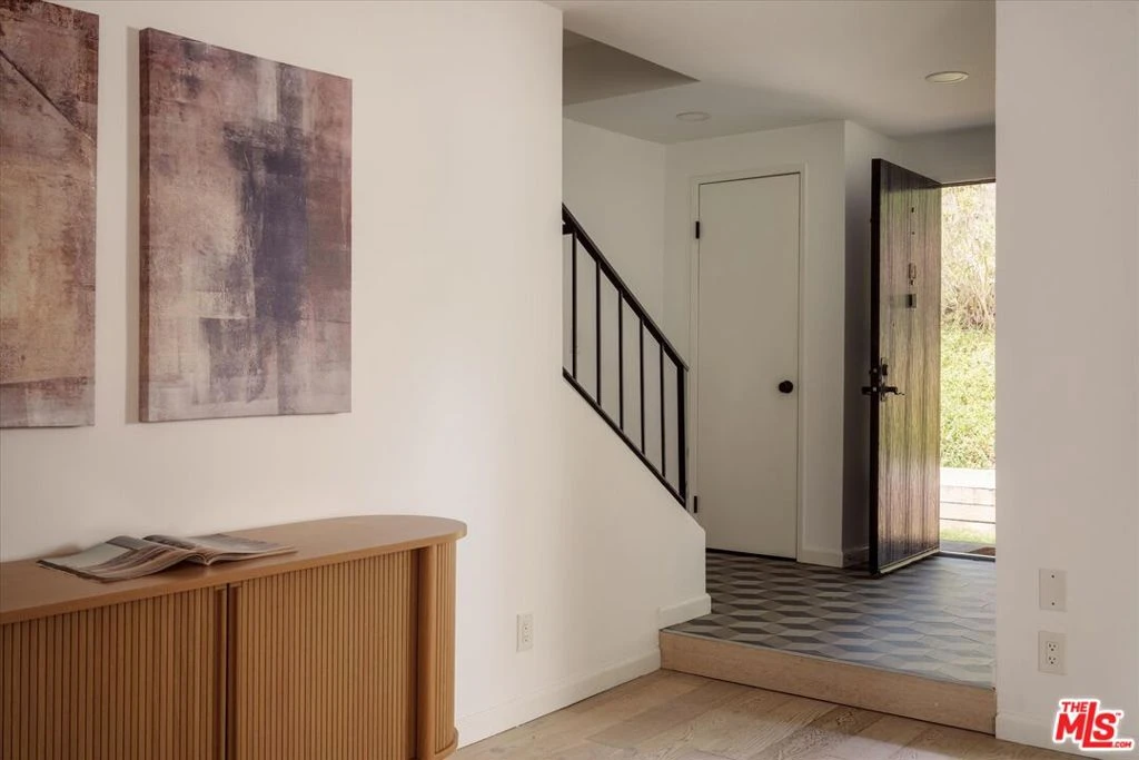Located in Cabrini Villas in Burbank, this renovated townhouse offers 3 bedrooms and 3 bathrooms along with an exceptional array of community amenities, including 7 pools, 6 tennis courts, a spa, sauna, clubhouse, volleyball court, and a 4-acre park. Set against the foothills of the Verdugo Mountains, the property enjoys a peaceful setting with convenient access to both Burbank and greater Los Angeles. The bright living room features a tiled fireplace and opens seamlessly to a private patio through sliding glass doors, creating an easy indoor-outdoor flow. Recessed lighting and hardwood floors add warmth and a clean, modern finish throughout. The kitchen is thoughtfully updated with geometric tile flooring, marble countertops and backsplash, stainless steel appliances, and crisp white cabinetry. The spacious primary suite includes a walk-in closet with built-in shelving and an en-suite bathroom with a double vanity and glass-enclosed shower. Two additional bedrooms offer flexibility for guests, family, or workspace. A bonus room just off the garage adds valuable flexibility, ideal for use as a den, office, gym, or additional storage. A private 2-car garage with washer and dryer completes the home. Enjoy close proximity to outdoor recreation, dining, and the Burbank Airport, offering a well-rounded and convenient Burbank lifestyle.