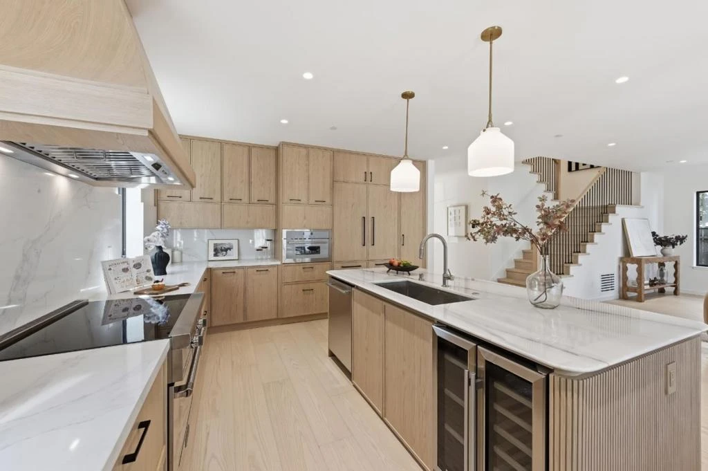 Rare find brand-new construction home in one of Burlingames most desirable neighborhoods, offering TOP RATED schools and a quiet residential setting. This thoughtfully designed primary residence features 2,658 sq ft, 4 bedrooms plus an office/den, and 4.5 bathrooms, including a convenient main-level ensuite, complemented by a detached 388 sq ft ADU with a full kitchen and bath, ideal for guests, a home office, or multi-generational living. Designed with both elegance and functionality in mind, the open-concept living space is centered around a sculptural curved marble island, complemented by custom cabinetry with premium German Blum hardware, a full Thermador appliance suite, integrated refrigerator, and a two-zone wine cooler. The marble fireplace adds warmth while maintaining a refined, modern aesthetic.Upstairs, three ensuite bedrooms offer privacy and comfort with vaulted ceilings. The primary suite includes a sitting area and a custom walk-in closet, while additional bedrooms feature built-in closets with integrated lighting. The home has been fully rebuilt with new foundation, electrical, plumbing, HVAC, windows, owned solar, and engineered white oak flooring throughout. Rare opportunity to own a thoughtfully designed new construction home in Burlingame. MUST SEE!
