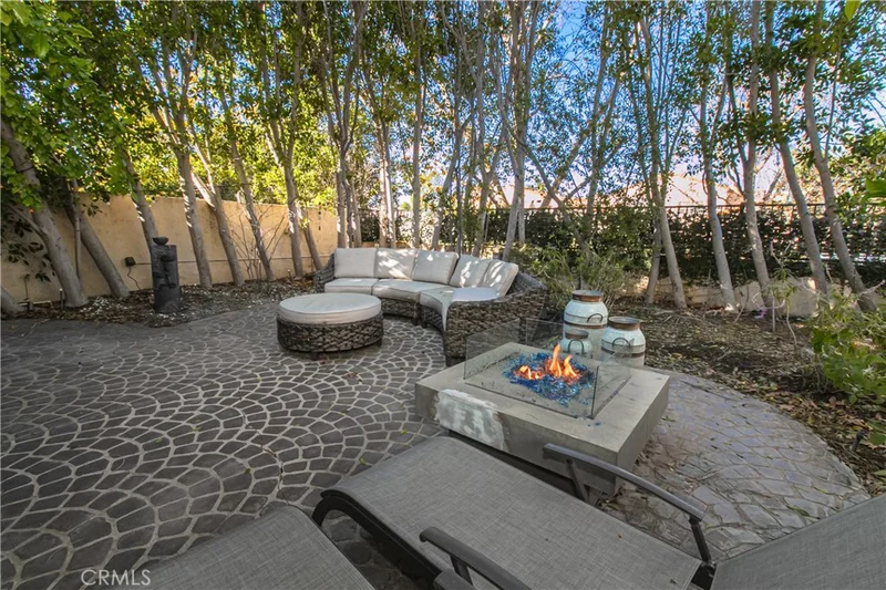 This beautifully updated unit offers three bedrooms and two-and-a-half bathrooms within the prestigious, gated Creekside community. An open-concept layout is highlighted by soaring vaulted ceilings and abundant natural light. The newly remodeled chef’s kitchen features a spacious refrigerator, a professional five-burner range and cooktop, and views to the backyard and family room, all seamlessly flowing into the main living areas. The family room is anchored by a striking glass-burning fireplace, creating a warm yet modern focal point. A bright downstairs bedroom provides flexibility as a guest room or an ideal home office, complemented by an elegant powder room for guests. Upstairs, the primary suite is a true retreat, featuring a spa-inspired en-suite bathroom with a generous dressing area and an expansive open walk-in shower. The second upstairs bedroom, with its own luxurious en-suite bathroom, is generously sized and offers comfort, privacy, and versatility, making it ideal for guests or family members. French doors open to a private and serene backyard patio with an outdoor firepit, perfect for relaxing or entertaining. Additional highlights include a two-car garage with direct access, a separate laundry room, and a prime location just minutes from The Commons at Calabasas and Calabasas Lake. A rare opportunity to own a refined, turnkey residence in one of Calabasas’ most desirable communities.