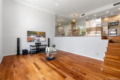 Beautifully maintained and partially furnished 2-bedroom, 2-bath condominium located in the heart of Calabasas. This light-filled home features an open floor plan with soaring ceilings, recessed lighting, and stylish glass railings overlooking the kitchen and dining area. The updated kitchen includes granite countertops, center island with bar seating, ample cabinetry, and Bosch appliances. The spacious primary suite offers wall-to-wall mirrored closets and an updated en-suite bathroom with a large walk-in shower. The secondary bedroom is generously sized with a private balcony. Additional highlights include wood flooring, dual-pane windows, ceiling fans, and in-unit washer hookups. Private gated front patio with landscaping and bistro seating creates a charming outdoor retreat. Shared garage includes two tandem parking spaces, private storage unit, and EV charger outlet. Community amenities include a heated pool and spa, with laundry facilities nearby. Prime location directly across from Calabasas Lake and close to the Calabasas Swim and Tennis Club, The Commons, Old Town Calabasas, farmers market, shopping, dining, and top-rated Las Virgenes schools.