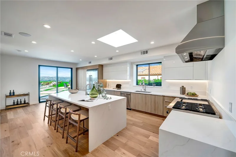 Views! Views! Panoramic Views! Welcome To The Prestigious Guard Gated Community of Westridge In Gorgeous Calabasas! This Rare, ONE STORY Beauty Shows Like A True Model!!! This Renovated Dream Exemplifies Luxury At Its Finest! This Home Features An Expansive Open Layout, Jaw Dropping Panoramic Views Of Calabasas and Beyond, Fine Finishes Including A Brand New Chef's Kitchen Equipped With State of Art Viking Appliances, White Quartz Counter Tops, Large Center Island, Sleek Cabinetry & A Breakfast Nook Overlooking The Entertainer's Yard. This Home Has An Unforgettable Warm, Modern Vibe. Complete with Wood Floors, LED Lighting, A Fantastic Indoor/Outdoor Living Space, Multiple Fireplaces, New Windows & Doors, Oversized Living Room-Perfect For Entertaining, A Primary Suite Fit For A King, Spa Style En-Suite, Custom Walk-In Closet+++ There Is A Junior Master Suite Easily Used As A Theater Room, Poker Room & More With Fantastic Double Doors Opening To The Loggia! Find A Designated Office, And Additional Spacious Bedrooms, A Separate Laundry Room, 3 Car Garage & More. Step Outside & Enjoy The Feeling Of 5 Star Serenity! This Massive Flat Lot Features A Pool, Spa, Built-In BBQ, Fire Pit, Multiple Lounge Areas & Exudes Resort Vibes. Enjoy The Spectacular Views From Dusk Till Dawn! Walking Distance To The Calabasas Lake, Commons, Cafe's & Boutiques.