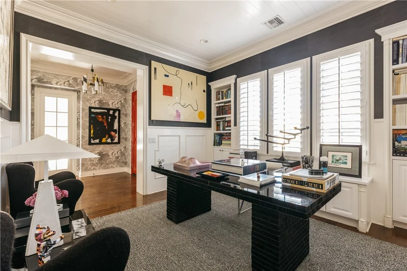 This beautiful, designer home situated in the prestigious, guard-gated, Oaks of Calabasas, has 3 bed 4 bath and an office (could be a 4th bedroom). This masterpiece is elegantly appointed throughout with finishes of the highest quality. The open floor plan design merges sophistication meeting functionality. Enter into a meticulously designed foyer w/office/library and powder room leading to the formal living and dining room with bespoke accent wallpaper, wood floors and high ceilings, intricate moulding and attention to details. Anchored by a central courtyard with a fireplace, outdoor dining, and seating area, natural light bathes the surrounding living spaces. The stunning gourmet kitchen showcases an over-sized working island and marble back-splash accenting the custom textured-glass-front black cabinetry and high-end stainless appliances. A breakfast nook and lavish family room is lined with picture windows and French doors opening into the backyard oasis. The ground floor primary room features a fireplace, spa tub, steam shower, and a customized walk-in closet with led lighting. Two additional en-suite bedrooms and a media/kids area complete the upper level. The landscaped grounds, reminiscent of an artist's garden, create privacy and serenity amongst the open seating, outdoor BBQ/kitchenette, and the resort style pool and spa. Located in the Highly rated Las Virgenes School District and minutes from the Calabasas Commons for shopping, dining, and entertainment.