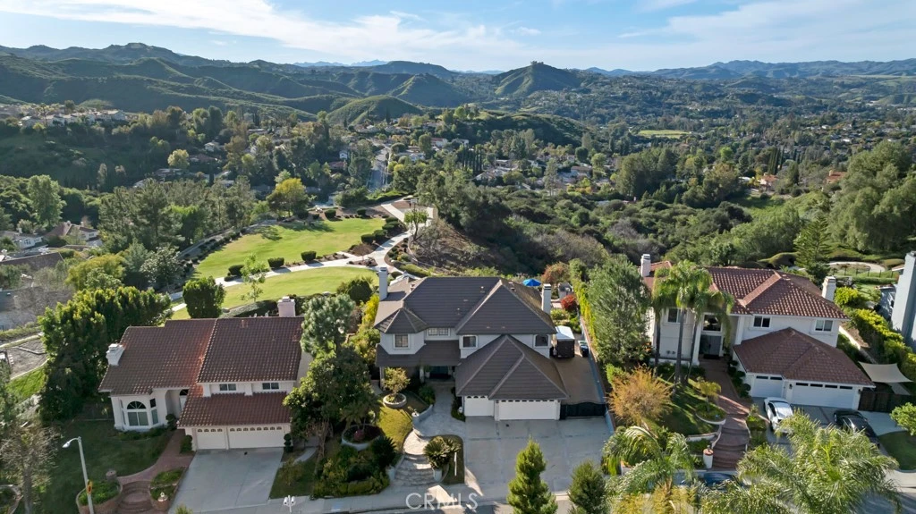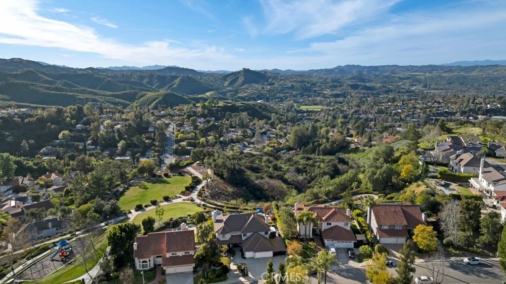 Magnificent Oxford model with views, views, and more views—breathtaking panoramic vistas of the mountains, neighborhood, and park, paired with spectacular sunsets. Located in the exclusive and prestigious Mulholland Heights community of Calabasas, this two-story residence offers nearly 3,800 square feet of living space with 5 bedrooms and 3.5 bathrooms. The functional floor plan includes one bedroom and one-and-a-half bathrooms downstairs, ideal for guests, multigenerational living, or a home office, with four bedrooms upstairs. The expansive primary suite features a large walk-in closet, an oversized bathroom, and a private balcony positioned to capture the dramatic views and sunsets. The backyard offers excellent potential for enhancement, with an existing pool, multiple lounging and sitting areas, and mature fruit trees, all set against a stunning scenic backdrop—an ideal foundation to create a truly resort-style outdoor living space. This home presents a rare opportunity for a buyer to reimagine and personalize a property with a well-proportioned layout, a prime view lot, and an unbeatable location—perfect for those looking to create a custom dream home in one of Calabasas’ most sought-after neighborhoods. Residents enjoy access to a private neighborhood park, patrolled security, top-rated Calabasas schools, nearby hiking trails, and endless outdoor activities. Conveniently located close to the freeway and Gelson’s shopping center. HOA dues include private security, neighborhood park, landscaping and common area maintenance, as well as a Spectrum package with high-speed internet and multiple streaming channels. Property is being sold in "as-is" condition. Seller will not provide repairs or credits.