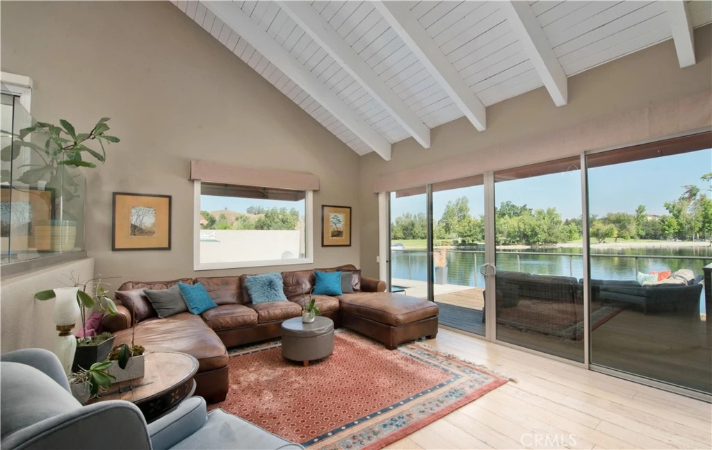 (Available fully furnished at $10,000) There is no finer location you could every wish for! Set at the end of a quiet cul-de-sac street and engulfed with panoramic lake views from nearly every window! This stunning residence has been beautifully remodeled throughout, highlighted with vaulted ceilings, gleaming wood floors and loads of natural light. Adorned with a sensational culinary kitchen, outfitted with its grand center island breakfast bar, custom cabinetry, elegant stone countertops and top-of-the-line stainless appliances. Opening from the kitchen is the cozy family retreat or stretch out and relax in the grand formal living room outfitted with wood beamed ceilings, walls of glass and elevated formal dining room. Encompassing three spacious bedrooms that include its expansive master suite with voluminous ceilings, large walk-in closet, private balcony and elegant spa styled bath with oversized soaking tub, separate commode, two-person seamless glass shower and dual sink vanity. To step out and relax here is an understatement, with its sparkling pool embraced with cascading waterfalls, covered patio dining area, firepit lounge with retractable awning and of course the incredible and unobstructed view of the lake and not so distant picturesque park. Enjoy all Calabasas has to offer with lake access for walking or boating, adjacent tennis center and beautiful park just steps away from your door!