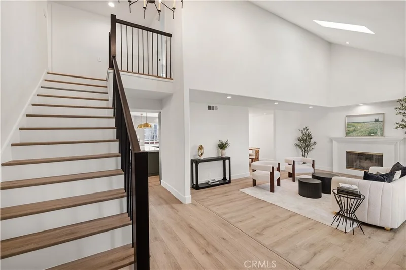 Fully remodeled and thoughtfully reimagined, this beautifully updated home offers a seamless blend of modern design and everyday functionality in a highly desirable neighborhood. The light-filled interior features laminate flooring throughout, recessed lighting, skylights, and an open, airy floor plan ideal for both daily living and entertaining. The chef’s kitchen is a standout, showcasing brand-new stainless steel appliances, custom cabinetry, quartz countertops, and a generous center island that anchors the space. Multiple living areas provide flexibility for formal and casual living, while large windows and French doors create a natural connection to the outdoors. All bathrooms have been completely renovated with designer tile, modern fixtures, and spa-like finishes. The primary suite offers a serene retreat, complete with a walk-in closet plus an additional wall-to-wall mirrored closet, providing exceptional storage and a boutique-like dressing experience, along with a beautifully appointed en-suite bath. Outdoors, enjoy a private backyard designed for easy living, featuring a sparkling pool, low-maintenance turf, and generous patio space ideal for relaxing or entertaining—offering the look of lush greenery without the upkeep. Additional upgrades include a brand-new roof, brand-new HVAC system, updated lighting, new cabinetry, and new appliances—providing true turnkey living. The property is recorded as a 4 bedroom, 3 bathroom home on title and is currently configured as a 3 bedroom, 3 bathroom layout; seller is willing to re-install the wall to convert the downstairs space back to a fourth bedroom if desired. Conveniently located near neighborhood amenities, parks, shopping, dining, and commuter routes, this home delivers both style and lifestyle in one beautifully finished package.