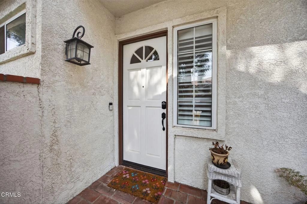 Welcome to Palm Colony, one of Camarillo's most desirable gated communities, offering a vibrant lifestyle and outstanding amenities. This prime corner location features 3 bedrooms, 3 bathrooms, and approximately 1,860 sq ft of well-designed living space.Step inside to vaulted ceilings and abundant natural light that instantly create the feel of a single-family home. The flexible floor plan includes a main-level bedroom or office with a full bathroom--ideal for guests or working from home.The updated kitchen showcases granite countertops and custom cabinetry, opening to the dining area and spacious living room with direct access to a private side patio--perfect for entertaining or relaxing. Tile flooring downstairs, wood-like vinyl upstairs, and custom wood shutters add style throughout.Upstairs, both bedrooms are private primary suites with en-suite bathrooms. The main suite offers a cozy fireplace and walk-in closet, creating a comfortable retreat. An upstairs laundry area adds everyday convenience.Enjoy a direct-access two-car garage, ample guest parking, gated entry, and beautifully maintained greenbelts.Palm Colony amenities include a pool, spa, tennis courts, racquetball, fitness center, and RV/boat parking--everything you need for an active lifestyle.Ideally located near the Camarillo Premium Outlets, dining, shopping, and easy access to the 101 Freeway.Some photos have been virtually staged to illustrate potential.