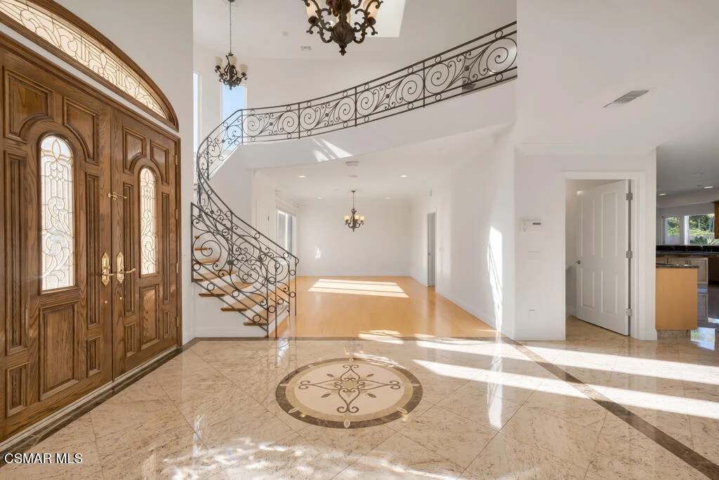 Welcome home to 7111 Los Coyotes Place in prestigious Garnidale Estates. Set on an elevated 22,041 sq ft lot, this exceptional 5-bedroom, 4.5-bath residence showcases striking unobstructed views of the beautiful Santa Rosa Valley. Enter through the large double doors to find soaring ceilings, crown moldings, with thoughtful design for comfort, accessibility, and entertaining.This special home offers true single-level living on both floors, seamlessly connected by a private in-home elevator. The luxurious primary suite features a fireplace, sitting area, walk-in closet, private view deck, and elevator access.At the heart of the home, the gourmet chef's kitchen boasts Miele appliances, granite countertops, a large island, a built-in refrigerator, and a breakfast nook, opening to an expansive great room with a fireplace, a wet bar, and a reading/piano alcove. Entertain effortlessly in the large formal dining room or relax in the elegant living room with a stone fireplace, recessed lighting, and built-in speaker system.Outdoors, the beautifully elevated ~1/2-acre lot is designed for privacy and year-round enjoyment, featuring a pool & spa with stunning panoramic views, built-in BBQ island with sink, patio heaters, retractable patio cover, manicured lawn, and generous hardscape. A charming private orchard is set below the main yard, which includes fig, persimmon, apple, pear, and pomegranate trees.Additional highlights include a 3-car garage, exceptional privacy, and a layout ideal for both everyday living and entertaining. A truly special Camarillo property combining views, space, accessibility with no HOA and no Mello-Roos.