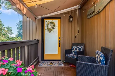 Fantastic White Water Ocean Views at this updated contemporary stylish home. Custom details throughout this 2 bedroom, 1.5 bath home on a a double merged lot. Upstairs features an open concept living, dining, and kitchen area, a half bath, and a deck. A cozy fireplace enhances your sunset watching, while the deck offers stunning views of the ocean, white water, and surrounding trees. The vaulted ceiling is adorned with decorative clerestory windows, wood detailing, and skylights that keep the space light and bright. The kitchen was tastefully updated with quartz countertops, custom soft-close cabinetry, new appliances, modern lighting, fixtures, and a slate tile backsplash. The tile flooring has a rustic wood look—easy to clean and perfect for beachside living. Additional updates include newer carpet, window blinds, drywall, and paint, giving this contemporary home standout appeal. Downstairs features the primary bedroom and bathroom, complete with a walk-in closet and an extra sink for guest convenience. A covered deck off the master bedroom provides a peaceful, private spot to take in the ocean waves. Originally a separate structure, the bonus office/workshop was professionally joined to the main house by the seller, a licensed contractor, creating a seamless and functional extension of the living space. Stone steps lead around the side of the home, and the property includes a carport and additional parking with a concrete driveway. The lot has a shed with a deck and a chicken coop, both structures have many possibilities. Escape the city and retreat to this custom ocean-view treehouse in Cambria Pines by the Sea.