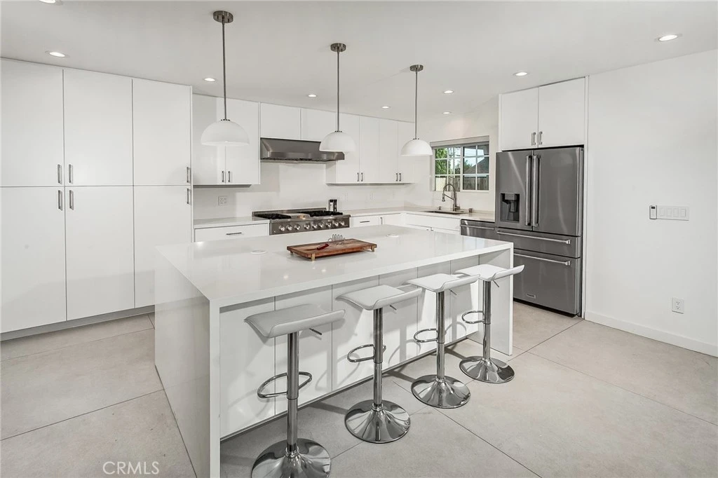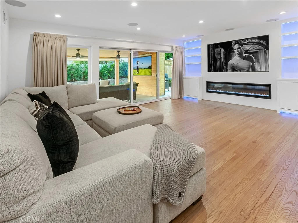 Renovated Smart home with Control4 automation, Level 2 EV charger, and indoor/outdoor living with integrated AV, hardwood floors, new windows, new exterior doors, cedar fencing, fresh exterior paint, and upgraded drainage. 12-zone Rain Bird irrigation system with drip and spray lines. Integrated Control4 system with central automation hub, enterprise-grade networking, and distributed wireless access points providing full-coverage Wi-Fi. System controls lighting, TVs, and audio indoors and outdoors; pre-wired for additional switches and keypads and fully expandable. Family room features custom millwork built-ins, 220V electric fireplace, integrated AV system with 7 in-wall speakers, subwoofer, receiver, RGB accent lighting. Kitchen includes quartz waterfall countertops, custom lacquered cabinetry with glass display uppers and lighting, center island with breakfast bar, in-kitchen dining area, pantry, motorized window shades, pop-up outlets, and undermount sink with pull-down faucet. Equipped with pro-style Thor appliances including 6-burner gas range, double oven, hood, refrigerator, dishwasher, microwave drawer, warming drawer, and wine cooler. Primary suite offers walk-in closet and natural light. Primary bath features floor-to-ceiling tile, dual vanity, frameless backlit mirror with integrated digital display, zero-entry glass shower with multiple heads and body jets, bidet, and customizable RGB lighting. Additional bedrooms include hardwood floors, recessed lighting, and ample closet space. Guest bath updated with tile walls, modern vanity, undermount basin, and tub/shower combination. Backyard designed for indoor/outdoor living with covered patio, tongue-and-groove ceiling, recessed lighting, ceiling fans, custom awnings, motorized exterior shades, integrated outdoor entertainment system, landscape speakers, landscape lighting, artificial turf putting green, raised planter, mature privacy hedging, drainage system, and finished shed with power and lighting. Systems include new 5-ton HVAC, upgraded 200-amp electrical panel, all new Lutron receptacles and Caseta switches, whole-house water filtration and softening, reverse osmosis drinking water system, and new gutters. ADT security system with whole-home cameras and power for future motorized gate. Insulated direct-access garage with mini-split HVAC, epoxy flooring, laundry area, full AV setup, and golf simulator capability. A beautifully upgraded home where smart design meets effortless living.