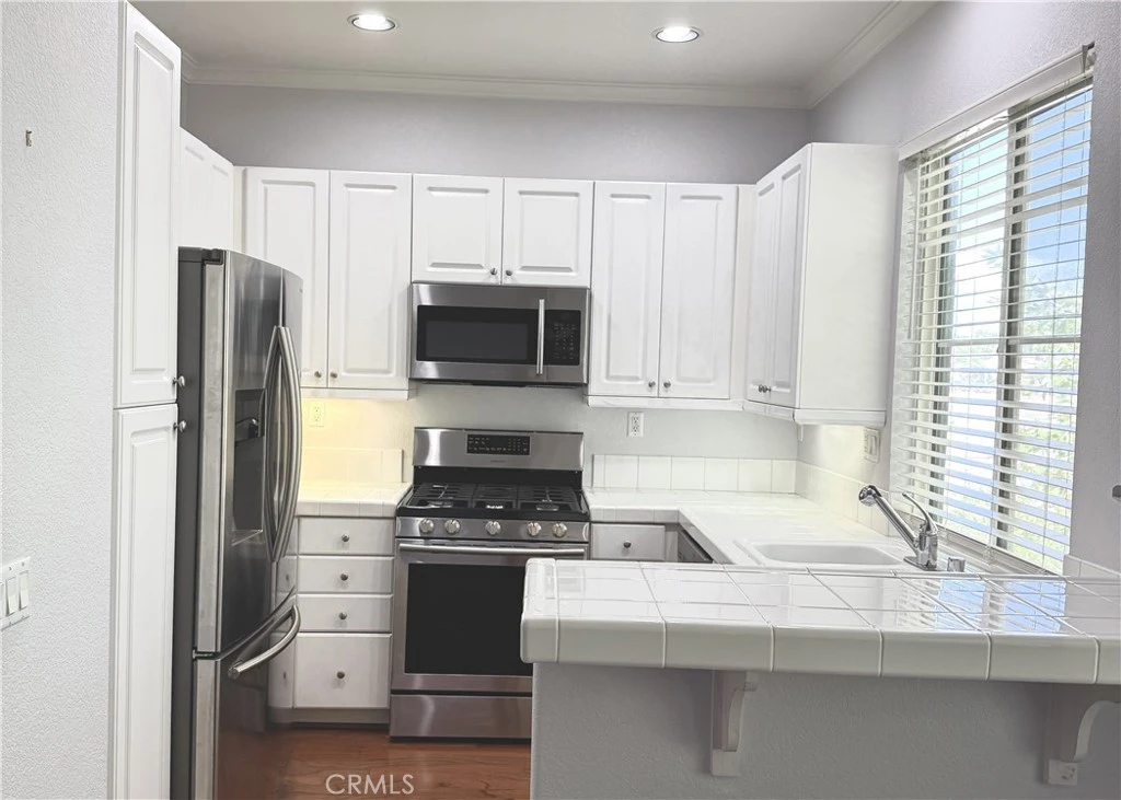 Welcome to the Prestigious Luxury Gated Community of Heather Ridge offering 2-bedroom, 2 bath corner unit. The home offers 1216 square feet of spacious and open floor plan. The Master Suite is a peaceful retreat with an en-suite bathroom with double sinks and a private potty room and a big walking closet. Living room showcases a fireplace and is open to the kitchen and provides you with access to your private patio with extra storage. Recessed lighting throughout, ceiling fans in every room, wood shutters in the bedrooms. The home comes with stainless steel appliances that includes Gas Range, Microwave, Dishwasher, Refrigerator and garbage disposal. The Washer and Dryer space side by side in its own area. This home includes a a private 2-car garage with direct entry into the home. The community amenities include a sparkling pool, spa/Hot Tub, BBQ area, tennis courts and basketball courts. This condo just got a new refreshed look and is ready for the right person to move right in. Close proximity to 14 Fwy, shopping, entertainment and dining.