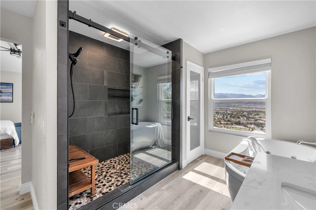 Hello Views! Welcome to the highly desirable Shangri-La neighborhood in Canyon Country! This move-in ready home has been completely remodeled with modern finishes, smart-home features, and energy-efficient upgrades throughout. The open floor plan creates a bright and spacious feel, highlighted by luxury laminate flooring, custom steel stair railing, new baseboards, and fresh interior paint. The chef’s kitchen is a standout with custom cabinets, a commercial-grade double oven, and quartz countertops, offering plenty of space for cooking and entertaining. The primary suite feels like a private retreat with a large walk-in shower, glass enclosure, whirlpool tub, and updated vanity. All bathrooms have been upgraded with new fixtures and finishes. This home also features major system upgrades, including a full plumbing repipe, new 200-amp electrical panel, high-efficiency HVAC, tankless water heater, whole-house water filtration, Milgard dual-pane windows, smart locks, programmable lighting, and a Tesla EV charger. Additional highlights include a stacked-stone fireplace, built-in saltwater aquarium, Ring security system, and upgraded garage. Near new community center, movie theater and several restaurants. A rare find in Canyon Country, this smart home offers comfort, style, and long-term value.