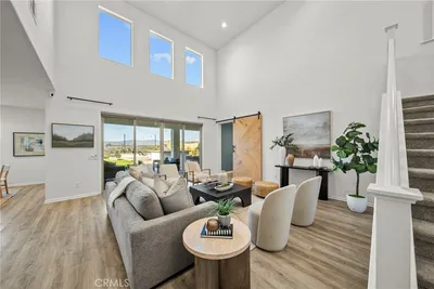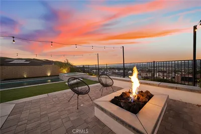 Stunning and luxurious view home in the gated Aliento Community with a resort-style backyard featuring a saltwater PebbleTec pool, spa, fire pit, and panoramic city light views. From the moment you step inside, the open-concept layout is filled with natural light, high ceilings, and a seamless flow between living, dining, and kitchen spaces—ideal for both everyday living and entertaining. A full bedroom and bath on the main level offer flexibility for guests or multi-generational living. The kitchen is both stylish and functional, featuring quartz countertops, an oversized island with bar seating, and a clean, modern design that opens directly to the main living areas. Positioned to take advantage of the home’s elevated setting, the kitchen, dining, and living spaces enjoy a sense of privacy along with beautiful mountain and city views. The real showstopper is the backyard, highlighted seamlessly from the living room through expansive windows and sliding glass doors that open to a covered California room with outdoor dining and led lighting. Designed for both relaxation and unforgettable gatherings, this private outdoor retreat features a sleek saltwater pool and spa, expansive hardscape with turf landscaping, and multiple seating areas. Take in breathtaking mountain and city light views while enjoying evenings under café lighting, hosting around the built-in BBQ, or unwinding fireside as the sky transitions from sunset to night. Upstairs, spacious bedrooms and a light-filled primary suite capture scenic views, creating a peaceful retreat to start and end your day. Enjoy daily panoramic views and evening city lights from the primary bedroom, enhanced by convenient remote-operated window coverings. The closet space is a dream with 15' in depth and 11' wide. Secondary bedrooms are thoughtfully positioned to capture natural light and surrounding views. Thoughtfully upgraded throughout, the home also offers energy efficiency with paid-off solar, a 3-car garage, and a location that combines privacy with convenience—just minutes from shopping, dining, and community amenities. This is more than a home—it’s a lifestyle defined by views, design, and the way you live every day.