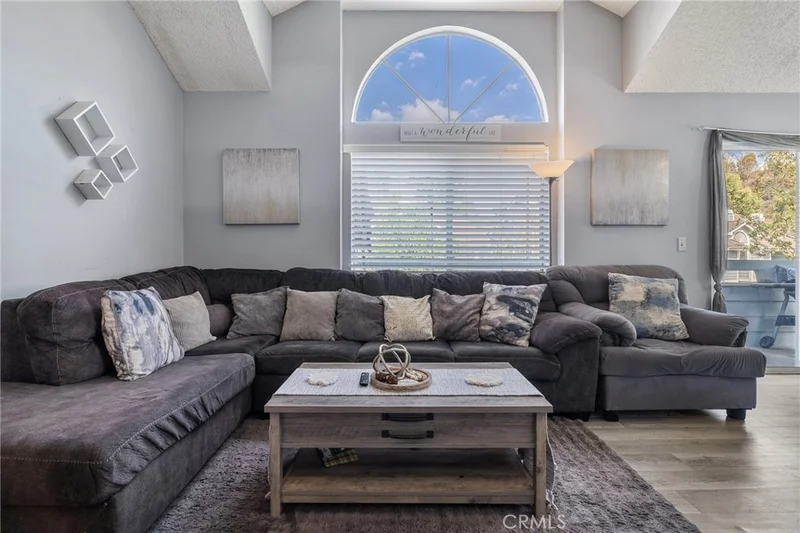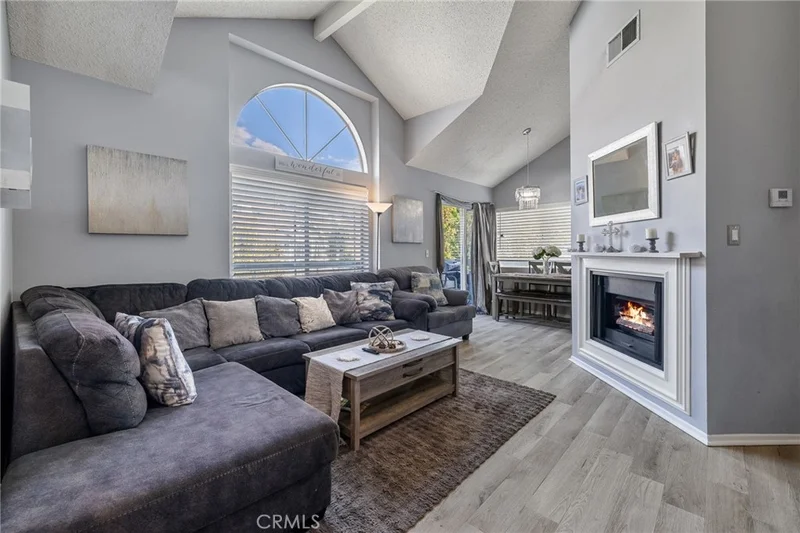 This beautiful and bright home in the highly desirable American Beauty Village West community is an upper-level unit offering 3 bedrooms, 2 full bathrooms, and a spacious loft, all enhanced by stunning high vaulted ceilings that fill the space with natural light. The loft adds versatile living space—perfect for a home office, media room, or guest area. Enjoy a large wrap-around balcony that provides added privacy and a peaceful outdoor retreat. With only one shared common wall and no one above, this home offers a quiet and serene living experience. Additional features include a cozy living room fireplace, in-unit laundry with a 1-year-old stackable washer & dryer included, and a 2-car tandem garage offering both storage and parking. Resort-style amenities include pools, spas, tennis courts, parks and lush greenbelts. The HOA covers water, trash, exterior maintenance, and Earthquake insurance. Conveniently located near shopping, dining, schools, and freeway access, this home has everything you need to settle in right away.
