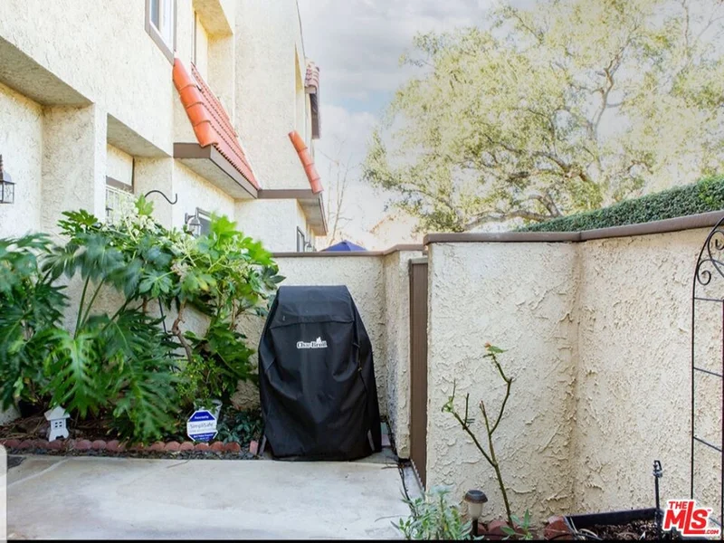 Located in the desirable Tres Robles community in Canyon Country, this attractive tri-level townhouse offers 2 bedrooms, 3 bathrooms, and a two-car attached garage with laundry. The main living area features a spacious living room with laminate wood flooring and a cozy fireplace, along with a coat closet and sliding glass doors that lead to a large private patio perfect for relaxing or entertaining. The adjacent dining area includes a ceiling fan and plenty of natural light, creating a warm and welcoming space. The upgraded kitchen is designed for both style and functionality, featuring granite countertops, a breakfast bar, tile backsplash, stainless steel microwave, bay window, and two-tone cabinetry with rich brown uppers and white lower cabinets. The refrigerator is also included. Upstairs you'll find comfortable carpeting, generously sized bedrooms with ceiling fans and mirrored wardrobes, and updated bathrooms. The primary suite features a walk-in closet and a beautifully tiled shower. Residents enjoy a peaceful setting along with community amenities including a pool, spa, playgrounds, and greenbelt areas. Conveniently located near shopping, dining, and freeway access, this home offers an excellent combination of comfort, convenience, and community living.