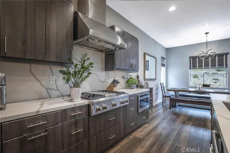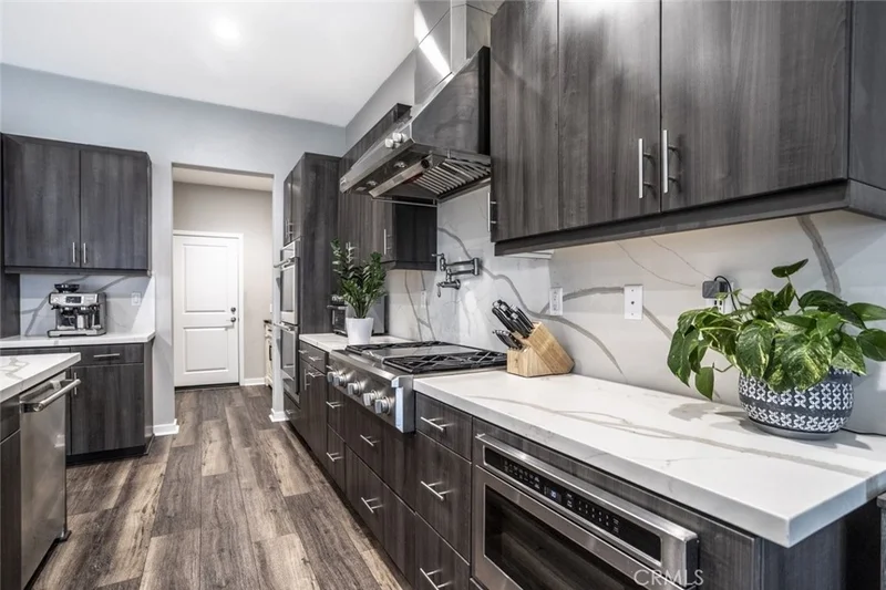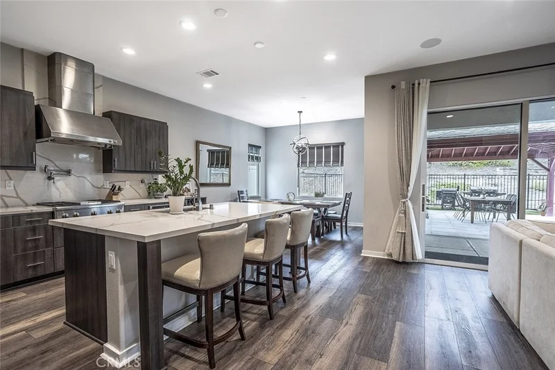 Beautifully maintained two story home in a desirable Santa Clarita neighborhood offering approximately 2,932 square feet on a 6,223 square foot lot. The home features 4 bedrooms, a bonus room that may serve as an additional bedroom, and 3 bathrooms. There are two primary bedrooms with attached bathrooms, one located downstairs and one upstairs, providing flexibility for multigenerational living or guests. The open floor plan is filled with natural light and showcases wide plank flooring, spacious living and dining areas, and a well appointed kitchen with modern cabinetry, generous counter space, a large center island, and stainless steel appliances. Living areas connect comfortably to the backyard for indoor outdoor enjoyment. The private backyard includes a covered patio and landscaped lawn. A two car attached garage provides parking and storage. Skyline community amenities include a pool, spa and hot tub, fire pit, barbecue area, sport court, tennis court, biking and hiking trails, guest house, pool house, clubhouse, recreation room, and maintained grounds. Conveniently located near parks, schools, shopping, dining, and major access routes.