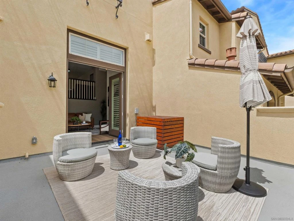 Welcome to this stunning Plan 2 residence in the exclusive gated community of Voscana, ideally located in the highly desirable Aviara neighborhood of Carlsbad. Beautifully upgraded throughout, this exceptional home showcases wide-plank laminate flooring, custom interior paint, and newer appliances, including a cooktop, dishwasher, washer/dryer, and modern ceiling fans. The spacious attached two-car garage is thoughtfully enhanced with epoxy flooring and a Tesla universal charger. Designed with an open-concept layout, the home is filled with natural light and offers seamless indoor-outdoor living with an expansive front patio. Additional highlights include California Closets in the bedrooms, a generous kitchen island, and numerous designer touches throughout—making this a truly exceptional opportunity not to be missed. Welcome to this stunning Plan 2 residence in the exclusive gated community of Voscana, ideally located in the highly desirable Aviara neighborhood of Carlsbad. Beautifully upgraded throughout, this exceptional home showcases wide-plank laminate flooring, custom interior paint, and newer appliances, including a cooktop, dishwasher, washer/dryer, and modern ceiling fans. The spacious attached two-car garage is thoughtfully enhanced with epoxy flooring and a Tesla universal charger. Designed with an open-concept layout, the home is filled with natural light and offers seamless indoor-outdoor living with an expansive front patio. Additional highlights include California Closets in the bedrooms, a generous kitchen island, and numerous designer touches throughout—making this a truly exceptional opportunity not to be missed.
