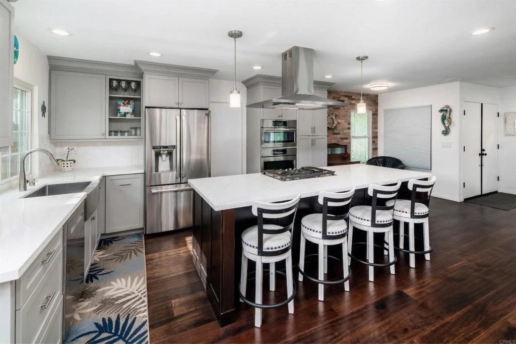 Effortless single-story living with style, soul, and a long list of upgrades—this Rancho Ponderosa gem is the one you’ve been waiting for. Featuring 3 bedrooms, 2 bathrooms, and a thoughtfully designed layout, this home blends warmth and functionality in all the right ways. Step inside to a bright, inviting interior where rich hardwood floors, exposed beams, and a sunken living room create a warm, architectural feel. The fireplace serves as a cozy focal point, perfect for relaxed evenings or entertaining guests. The beautifully remodeled kitchen is a true centerpiece, featuring stainless steel appliances, quality cabinetry, generous prep space, and a large island ideal for gathering, dining, and everyday living. Both the front and backyard showcase lush, well-maintained landscaping, enhanced with thoughtful upgrades including new sod, irrigation improvements, added pavers, and curated drought-conscious plantings. The private backyard offers a peaceful setting for entertaining or unwinding, with no direct rear neighbors—creating an added sense of privacy—complete with a finished shed (installed in 2025 with electrical) that makes an ideal home office, gym, studio, or guest retreat. This home has been meticulously maintained and upgraded throughout. Notable improvements include exterior paint (2023), roof cleaning (2023), upgraded irrigation systems and timers, reinforced and refreshed patio cover with shade screen, added exterior lighting and electrical, new fencing and gates, and extensive drainage and hardscape enhancements. The garage has been fully improved with added storage systems, drywall and paint, updated electrical, and a newer opener (2022). Inside, the home was freshly painted throughout (2022–2023), with solid core doors added to all bedrooms and the hallway bathroom, upgraded window coverings, and enhanced closet organization systems in every bedroom. Additional upgrades include a fire-rated garage entry door, updated bathrooms with new fixtures, cabinetry, GFCI outlets, and a new primary toilet (2024), a beautifully remodeled primary bathroom, as well as ceiling fans with lighting in all bedrooms. Located in a welcoming neighborhood known for its strong sense of community, Rancho Ponderosa offers HOA amenities including community events, parks, playgrounds, sport courts, sidewalks, and maintained easements. The home is also situated within highly sought-after school boundaries, including El Camino Creek Elementary and La Costa Canyon High School. Enjoy close proximity to local parks, shopping, dining, and the beaches of North County. With its extensive upgrades, functional layout, and inviting character, this move-in ready home offers a rare opportunity to enjoy comfort, flexibility, and community in one of the area’s most beloved neighborhoods.