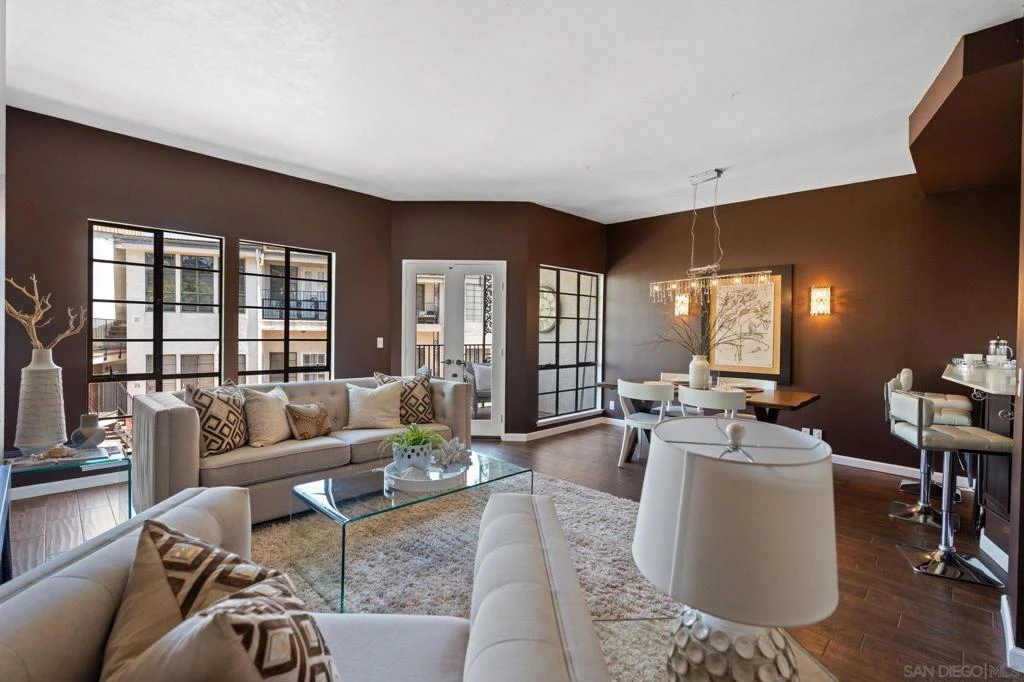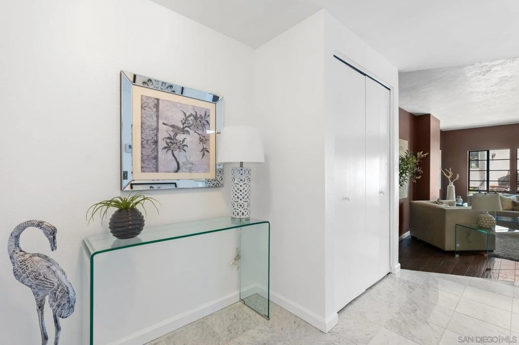Welcome to this top floor condo in sought after in La Costa, nestled in a gated complex. Step inside to a sumptuous interior featuring stone tile floors, high ceilings and gas fireplace in the spacious living room. Dine with friends under the twinkle of crystal embellished fixtures in the open dining area or sip coffee on one of the two private balconies ideal for enjoying the morning coastal breeze. In unit laundry plus new AC installed November 2025. Additional highlights include in-unit laundry, great storage with pair of closets in the primary bedroom, efficient wet bar, and access to the community pool, spa, redwood rock sauna and charming gated landscaped grounds. Gated parking with conveniently located assigned parking space with storage. HOA pays water, sewer, trash and gas utilities. Owner pays electricity, cable & wifi.