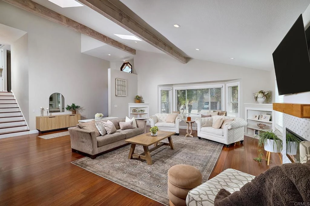Located in the highly desirable La Costa neighborhood of Carlsbad, this beautifully updated 4-bedroom, 3-bath home offers space, flexibility, and privacy on a large view lot in a cul-de-sac! Bedroom and full bathroom on the lower level. As you enter the home, you’re welcomed by a stunning great room with soaring vaulted ceilings, a custom fireplace, and a light-filled open floor plan that creates an immediate sense of warmth and spaciousness. The spacious kitchen features a premium Bosch refrigerator, overlooks the sparkling pool, and opens directly onto a large deck — perfect for indoor-outdoor living and effortless entertaining. The remodeled dining room is a true showpiece, complete with custom-built-in cabinetry, a striking feature wall, and a wine fridge — ideal for hosting gatherings in style. The downstairs has been completely remodeled and offers a private, self-contained retreat. This exceptional space features its own living area, fireplace, full bath, mud room, kitchenette, and washer and dryer, along with its own private outdoor space — creating ideal accommodations for in-laws, guests, or extended stays while maintaining privacy and independence. All bathrooms have been tastefully updated, including a completely remodeled primary suite bathroom designed with modern finishes and thoughtful detail. Custom lighting throughout enhances the elevated design aesthetic. Additional highlights include a large attic storage space and a 2-car garage. Step outside to your private backyard retreat featuring a pool, expansive lot, and sweeping neighborhood views — ideal for relaxing or entertaining. No HOA or Mello Roos! Highly rated schools, close to shopping!
