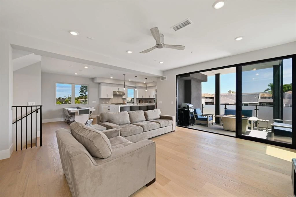 Welcome to Twelve West—an exceptional end-unit coastal townhome completed in late 2025, just one block from the ocean and offered move-in ready. This is California beach living at its finest, where refined design meets an effortless indoor-outdoor lifestyle. Situated in one of Carlsbad’s most coveted coastal enclaves, this 2,156 sq. ft. residence showcases 3 bedrooms, a versatile first-floor bonus room or office, and 2 full plus 2 half baths—all thoughtfully curated with high-end finishes and modern functionality. Expansive accordion-style sliding doors create a seamless connection to the patio, while a spacious deck off the great room and a private, landscaped yard invite year-round entertaining. Wide-plank European oak flooring flows throughout, complemented by smart home integration and owned solar for efficiency and sustainability. The direct-access two-car garage features sleek epoxy flooring and generous storage. At the heart of the home, the chef’s kitchen is a statement of both style and performance, appointed with Wolf and Sub-Zero appliances, including a 36” dual-fuel six-burner range, microwave drawer, built-in refrigerator, and wine fridge. Quartz countertops, a dramatic waterfall island, shaker cabinetry, designer tile, matte black hardware, and Kohler fixtures complete the space with timeless sophistication. The great room opens effortlessly to a large, BBQ-plumbed deck through stacking glass doors—perfect for hosting or enjoying coastal breezes. Upstairs, the primary suite is a true retreat, featuring vaulted ceilings, custom built-ins, a spacious walk-in closet, and a spa-inspired bath with premium finishes. Two additional bedrooms and a dedicated laundry room complete the upper level. Outdoors, the south-facing yard is beautifully enhanced with privacy landscaping and low-maintenance turf, offering a serene and private setting. Additional highlights include pre-wired audio, security, and abundant storage throughout. All of this just moments from the sand and minutes to the vibrant shops, dining, and charm of Carlsbad Village—delivering an unparalleled blend of luxury, location, and lifestyle.