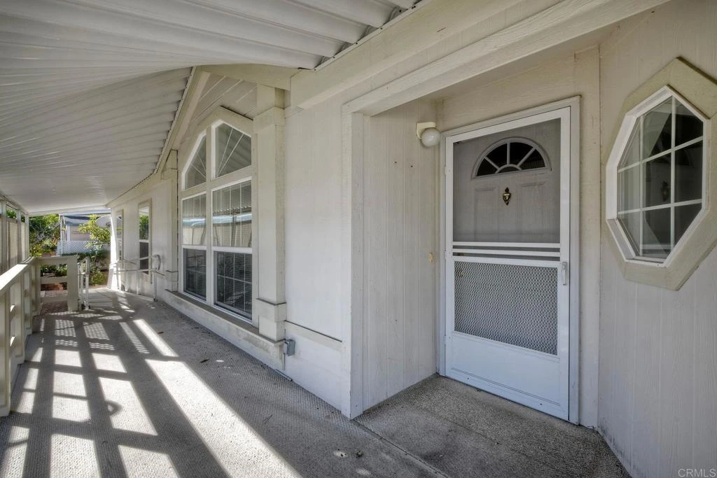 Welcome to resort-style living in this desirable 55+ land-owned manufactured home community in Carlsbad. This beautifully maintained home features brand new laminate flooring throughout, central A/C, and a wheelchair accessible front entry ramp, offering both comfort and accessibility. The thoughtfully designed floor plan includes a bright kitchen with quartz countertops, white cabinetry, a cozy breakfast nook and a separate formal dining room, ideal for entertaining or everyday living. Recent upgrades add peace of mind, including a new furnace (2024), new dishwasher (2025) and updated copper plumbing throughout. The home includes a RING security system on windows and doors, which conveys with the sale. The refrigerator, wash and dryer are also included. The backyard boasts lemon and Haas avocado trees with automatic sprinklers. The primary bathroom offers a spa-like retreat with a walk-in jacuzzi tub featuring a seat warmer, backed by a transferable lifetime warranty. Residents enjoy an array of amenities to include lake, golf course, clubhouse, pickleball and more along with common RV parking. This is a wonderful opportunity to own a highly upgraded home in one of Carlsbad's most popular 55+ communities where comfort, convenience, and lifestyle come together. Seller will provide a one year Home Warranty.