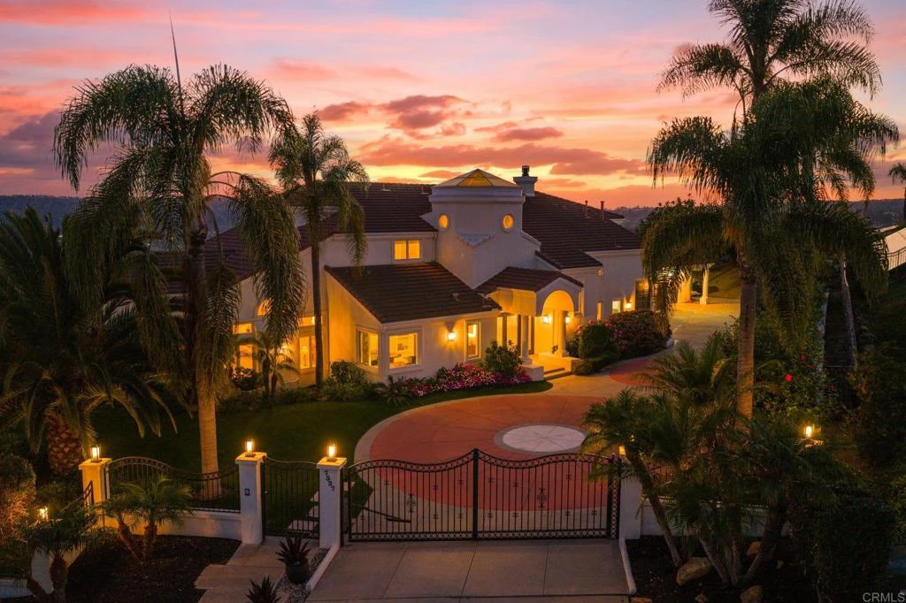 Perched on one of La Costa Estates’ premier hilltop locations, this elegant custom architectural residence captures sweeping views of the Pacific Ocean, Batiquitos Lagoon, and the renowned Omni La Costa golf course from nearly every room. Offering both privacy and security, the home sits behind a wrought-iron gated driveway and fencing, creating an exclusive retreat. Over half a million has been invested in recent upgrades that showcase the highest level of craftsmanship and design. Step through the beveled glass entry door into a dramatic foyer with soaring ceilings with a hexagon glass turret. Throughout the home, new 24x48 porcelain tile flooring and carpeting, custom LED lighting, and solid mahogany doors elevate every detail. The chef’s kitchen is a showpiece, featuring quartzite counters with waterfall edges, custom backsplash, top-of-the-line appliances, a spacious walk-in pantry, and a Butler’s Pantry—perfect for both daily living and entertaining. The primary suite offers a private retreat with a custom built-in fireplace and balcony to take in the panoramic views. The spa-inspired bath boasts massive Daedalus natural stone slabs, a freestanding soaking tub beside a fireplace, and a custom walk-in closet. Three additional en-suite bedrooms include one conveniently located on the first floor, as well as a dedicated office. Designed for Southern California living, the backyard is an entertainer’s dream with a sparkling pool, spa, expansive patio, and lush tropical landscaping. A 20x10 koi pond adds serenity, while a corner pad of the property presents potential for an ADU. Owned solar ensures energy efficiency. And with no HOA or Mello Roos, the home offers unmatched freedom. Welcome to your coastal paradise in La Costa Estates.