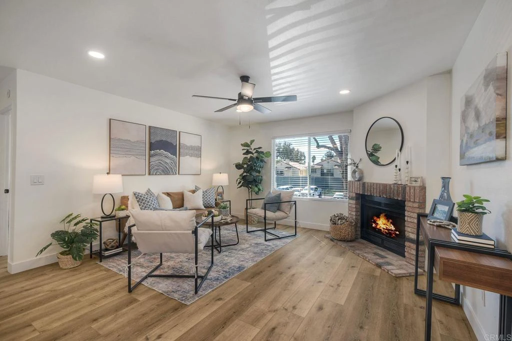 GORGEOUS remodeled 1BD/1BA you do not want to miss! This stunning end-unit home is perfectly situated upstairs with no one below and offers sweeping views of the La Costa hills. Light & bright, open-floor plan, this home has been Recently renovated from top to bottom featuring all new windows, flooring, kitchen, bath, appliances, and fixtures throughout. Enjoy cozy evenings by the fireplace and your own one-car garage. plus assigned spot. Enjoy resort-style living in this gated community with tennis courts, gym, pool, spa, and sauna, BBQ area and all conveniently located near beautiful trails, parks, and premier shopping centers.