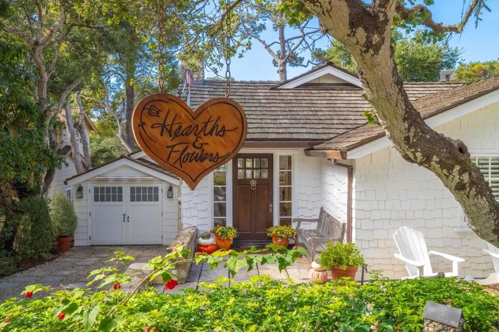 Welcome to Hearths and Flowers, the quintessential Carmel-by-the-Sea cottage, in the heart of the Golden Rectangle. Unwind to the sounds of the ocean in your private Carmel Stone courtyard. Hearths and Flowers is located on a quiet, level, tree-lined street; an easy 5 minutes to fine dining and art galleries of Carmel Village as well as 5 minutes to the beach. This sanctuary combines historic storybook charm with move-in ready luxury. Updates include porcelain kitchen countertops, engineered hardwood flooring throughout, large master with walk-in closet including new living room with custom built-in shelving, french doors to terrace, and guest rooms designed for friends and family as well as Starlink internet. Large storage space allows for items like surfboards, bikes, and holiday decorations to be securely accommodated. Two full private parking spaces assures easy access for you and your fortunate guests to the world class Carmel-by-the-Sea experience. This once in a lifetime opportunity is a legacy asset that will provide endless memories for generations to come.