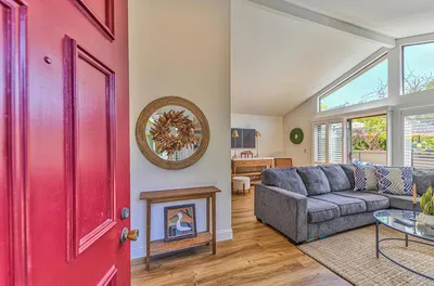 Beautifully updated 3-bedroom, two-bath end-unit townhome is conveniently perched above downtown Carmel. This serene retreat offers both space and privacy in an unbeatable location. Step inside to find a light-filled interior featuring gorgeous marble and hardwood floors. Nearly every window frames peaceful, verdant views, creating a constant connection to nature. The main level showcases a spacious primary suite with a large private deck off patio doors. The updated kitchen has stainless steel appliances and inspiring ocean and forest views provide the perfect backdrop for entertaining. The dining area open onto the dramatic living room with vaulted ceilings, an inviting fireplace, and a deck ideal for enjoying breathtaking sunsets. Downstairs, two additional bedrooms, a remodeled full bathroom, a laundry room, and a deck perfect for watching the sunsets over the Pacific.Additional highlights include two garages, and a huge storage room off the laundry area. This is coastal California living at its finest- quiet, and effortlessly close to everything that makes Carmel extraordinary.