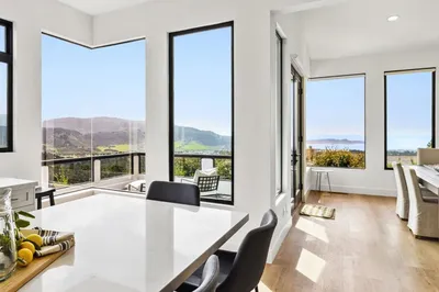 Set on 5 acres overlooking Monterey Bay, this California Ranch meets Post Adobe estate offers expansive views, generous living spaces, and a rare sense of seclusion just minutes from Carmel and Monterey. Gated and spanning just over 5,000 sqft, the home blends timeless architecture with a warm, inviting floor plan. A grand entry leads to the formal living room with sweeping bay views framed by large windows. The spacious primary suite enjoys an even more dramatic vantage point and features a large dressing room, bathroom with soaking tub, and private balcony positioned to take in the coastline. At the heart of the home, a vaulted great room with wood-beamed ceilings flows into the dining area and gourmet kitchen, creating an ideal space for gathering. Wood floors run throughout, while French doors open to an expansive courtyard with built-in BBQ and multiple patios designed for indoor-outdoor living. The attached 1 bed, 1 bath ADU includes a kitchen, spacious living room, and separate entrance. The property also features an oversized three-car garage with adjoining workshop or home office and ample storage. This estate combine privacy, space, and breathtaking bay views with convenient access to the highway, beaches and amenities of Carmel and Monterey.
