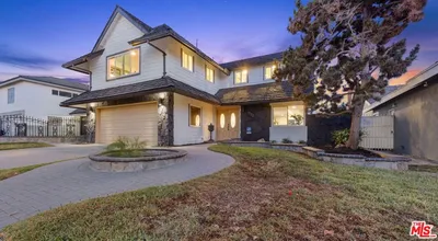 Craftsmanship, space, and versatility define this exceptional residence in Carson, ideally situated on a quiet small dead-end street. This five-bedroom, four and a half bath home offers approximately 3,000 square feet of living space, plus a rare approximate 1600 square feet basement that provides outstanding flexibility and potential. The home welcomes you with a striking wrought-iron double-door entry featuring operable glass panels for natural light and airflow. Inside, travertine flooring on the ground level, soaring ceilings, and architectural metal railings create an impressive foyer. The entry level is bright and open, featuring a ground-floor bedroom with ensuite, ideal for guests, in-laws, or a home office. The living room is designed for comfort and ambiance, showcasing a gas fireplace, powder room, dramatic inverted recessed tray ceiling, and sliding glass doors that lead to the backyard. Just a few steps up, the kitchen offers easy access for everyday living and entertaining. The dining and kitchen areas flow seamlessly, including a formal dining room with architectural tray ceiling, direct kitchen access, a versatile pantry space ideal for a coffee or beverage bar, and sliding doors opening to the side and backyard. A breakfast area with a bay window adds warmth. Upstairs, a bright landing includes linen storage and a convenient laundry chute. Secondary bedrooms are bright, with two enjoying access to a front balcony with craftsman-style column railings, perfect for morning sun or evening stargazing. The primary suite is an expansive, resort-like retreat, featuring double-door entry, space for a sitting area or library, ensuite with dual vanities, soaking tub, separate shower, walk-in closet, and a laundry chute. A private rooftop balcony extends the living space outdoors ideal for yoga, coffee, or quiet relaxation. A rare, oversized basement, divided into three areas, adds a level of versatility seldom found in the neighborhood ideal for recreation, workspace, creative YouTube channel, or storage. Completing the home is a gated two-car garage with high ceilings, additional driveway parking, a travertine front porch, and a backyard ready to be transformed into a custom outdoor oasis. Buyer to perform all due diligence and independently verify condition, permits, square footage, basement use, access, and any other material facts.