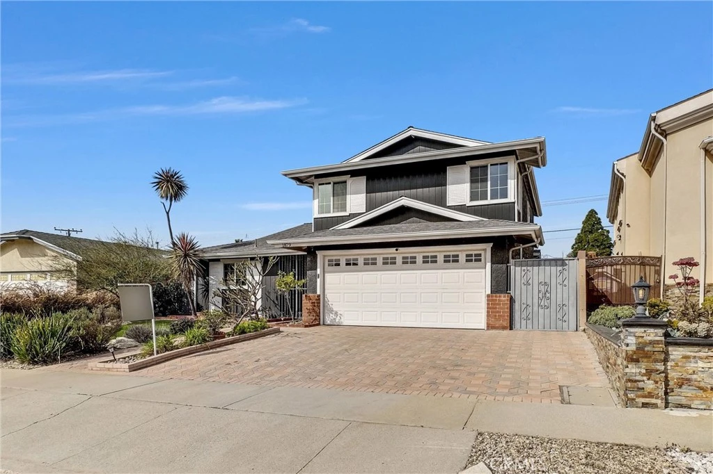Stunning two-story home showcasing impeccable curb appeal and paid-off solar panels for energy efficiency and long-term savings. The beautifully designed exterior features paver stone driveway, low-maintenance turf landscaping, and a secure front entry with a security door and elegant double-door entrance. Step inside to an exceptionally spacious first floor with an open and versatile layout, perfect for both everyday living and entertaining. The main level includes a welcoming living room with a cozy gas fireplace, a dining area, and a large family room complete with a huge wet bar—ideal for gatherings or easily convertible into a 4th bedroom. Adding even more living space is a massive 443 sq ft sunroom, offering endless possibilities for relaxation, entertaining, or a home office. The gourmet kitchen is a standout, featuring stylish gray cabinetry with ample storage, sleek quartz countertops, a glass mosaic backsplash, electric stove, and a Bosch dishwasher. Throughout the living spaces, enjoy luxury vinyl plank flooring, recessed lighting, and dual-pane windows that enhance comfort and natural light. Upstairs, you’ll find three generously sized bedrooms, including a spacious primary suite with a large closet area and a dedicated makeup vanity. The secondary bedrooms offer ample space and mirrored closet doors for added functionality and style. The backyard is a true private oasis, complete with pavers, turf grass, a mature lemon tree, and a tranquil pond that creates a serene atmosphere. A charming gazebo provides the perfect spot for outdoor entertaining, while a large Suncast shed offers convenient additional storage. The property is fully enclosed with brick walls, providing excellent privacy, security, and sound insulation. Additional highlights include a direct-access two-car garage, central A/C and heating, upgraded electrical panel, newer roof in 2017, rain gutters, Nest thermostat, and an ADT alarm system. Located in a wonderful neighborhood and centrally located between the 405, 91, and 710 freeways. This home truly offers exceptional space, thoughtful upgrades, and comfort throughout—an opportunity you don’t want to miss.
