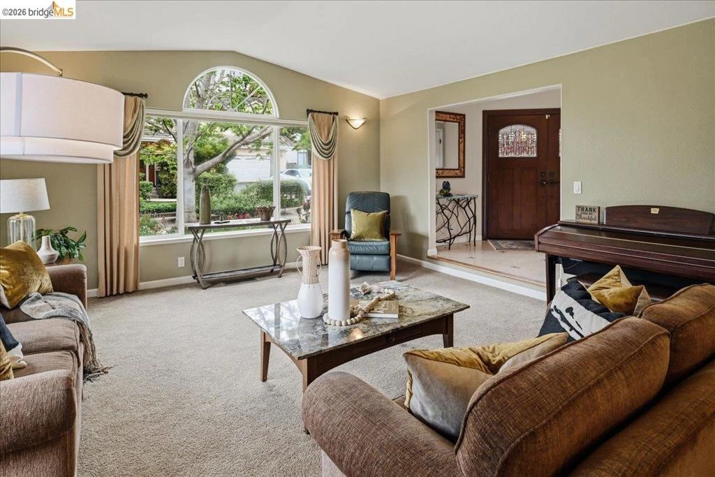 Nestled in a serene, forest-like setting among towering Redwoods and mature landscaping, this exceptional Upper Castro Valley home has been meticulously maintained and offers rare privacy with close proximity to everyday conveniences and top rated schools. A striking exterior opens to an inviting floor plan with vaulted ceilings and oversized windows that flood the home with natural light and hillside views. Seamless flow between the living, dining, and kitchen areas creates an ideal space for both daily living and entertaining. The chef’s kitchen features a large island, stone countertops, designer tile backsplash, and premium stainless-steel appliances including a Wolf 6-burner gas range and Miele double ovens. Cook and dine while enjoying spectacular scenic views. The living room with vaulted ceilings and family room with stone fireplace offer comfort and style. Upstairs, the oversized primary suite boasts tranquil views and a spa-like bath with soaking tub and glass shower, plus two additional bedrooms. The lower level includes a family room and office, fourth bedroom, full bath, workout room and storage. Expansive decks, outdoor kitchen, pergola dining, spa, fire pit, level lawn and water features create a true indoor-outdoor retreat. This is a destination, not a backyard! This home includes a 2-car garage and EV charger and is commuter friendly with access to nearby BART and freeways. Don't miss this exceptional opportunity to start your next chapter in this elegant custom home.