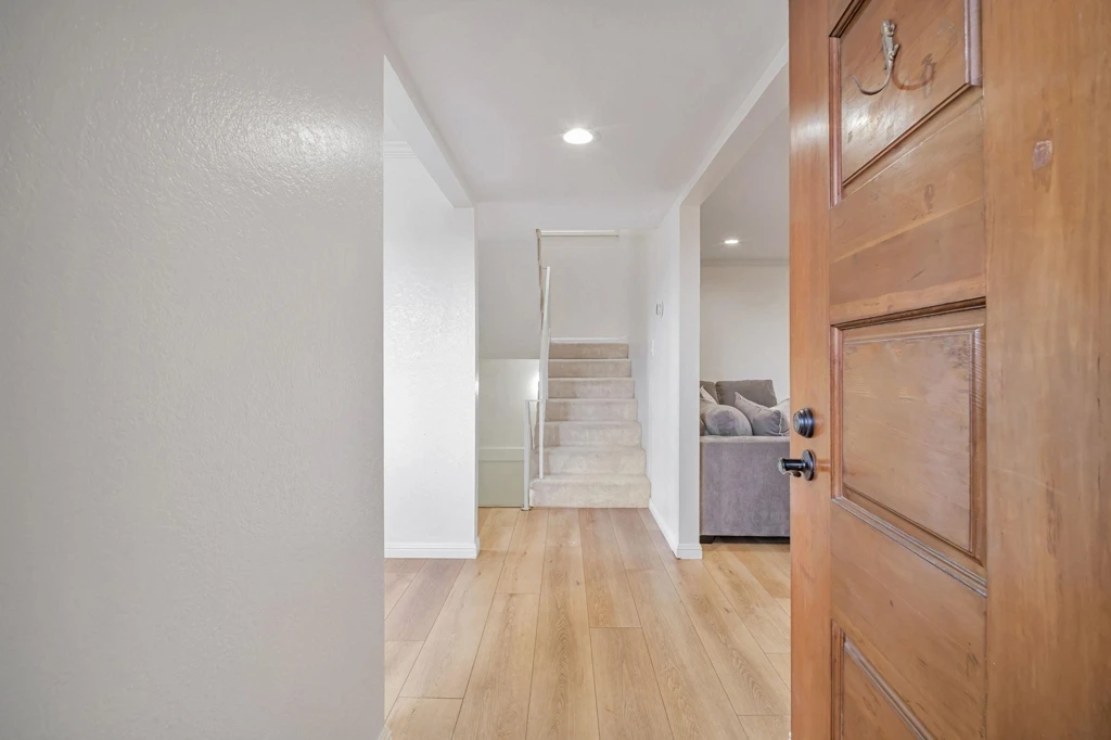Welcome to this beautifully updated 2-bedroom, 2.5-bath corner townhouse with sweeping views of Castro Valley. This is the largest 2-bedroom floor plan in the community, offering over 1,600 sq ft of inviting living space. Inside, you’ll notice the abundance of sunlight and open feel throughout. The eat-in kitchen features granite countertops, a glass tile backsplash, farmhouse sink, and a generous pantry—perfect for home chefs. A separate formal dining room offers a great space for entertaining. The cozy living room includes a gas fireplace and opens to a private patio with easy access to the community pool. Upstairs, the oversized primary suite offers ample closet space and a stylish modern bath. The second bedroom is also impressive with its own private balcony overlooking lush landscaping. Additional highlights include a side-by-side two-car garage, plus access to the community’s pool, clubhouse, and sauna. Located in the top-rated Castro Valley school district, and just minutes from BART, Lake Chabot, shopping, and dining.