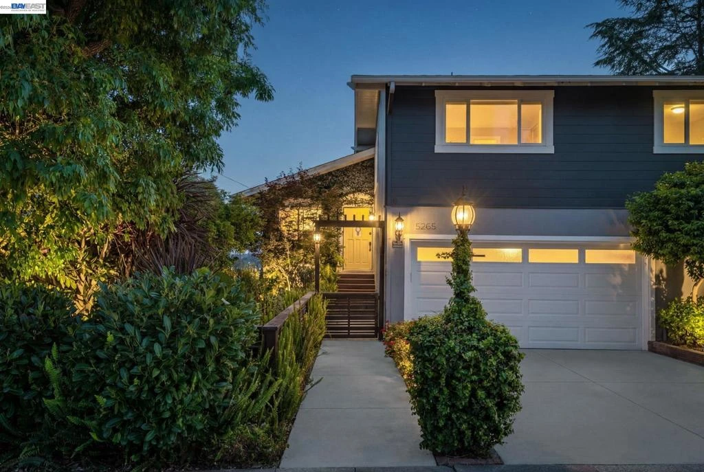 Tucked at the end of a quiet cul-de-sac, 5265 Winifred Dr. offers privacy, charm, and thoughtful updates throughout. A welcoming approach—lined with light posts and surrounded by mature greenery—leads to a home full of character, highlighted by a distinctive vining façade. Inside, a glass door opens to a spacious upper deck, creating a seamless extension of the living space—ideal for relaxing, entertaining, or enjoying sunset views. The main level features original hardwood floors, a bright and inviting living room, and a dining area that sits just off the kitchen—providing separation while maintaining a functional layout and easy access to the deck. The updated kitchen includes refinished cabinetry, quartz countertops, recessed lighting, and stainless steel appliances. Upstairs, three bedrooms include a primary suite with a refreshed bathroom featuring updated flooring, fresh finishes, and a new vanity. The hallway bathroom has been fully renovated with quartz shower walls, a new tub, modern fixtures, and updated flooring. Hardwood floors continue throughout the bedroom level. The lower levels offer a workshop area adjacent to the two-car garage and a dedicated laundry/utility room provide added functionality. A flexible bonus room with a custom bar, separate entrance, lower patio, and direct garden access—well suited for a home office, media room, or guest space. Located near trails, Castro Valley Marketplace, Lake Chabot Regional Park, BART, and major freeways, offering convenient access to shopping, dining, and commuting.