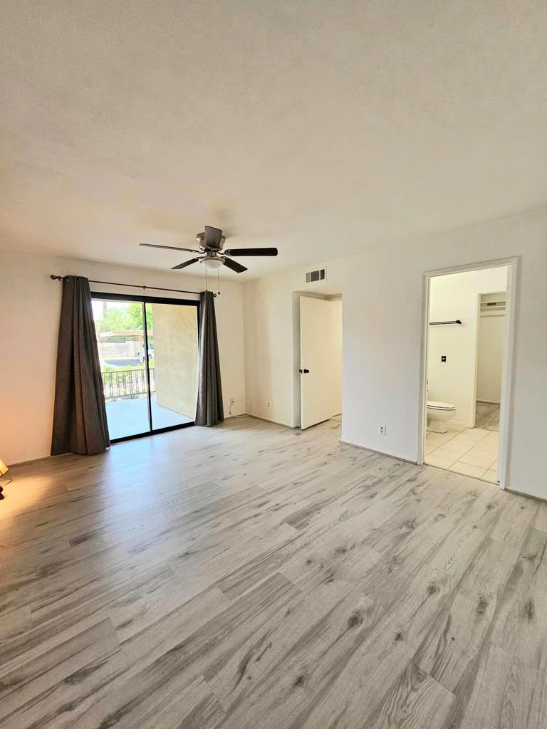 Freshly Remodeled & Spacious 2/2 ground floor unit home features a full-sized walk in laundry room with Washer & Dryer included. Dual patios with Western views. Very Large Bedrooms with an Enormous walk-in closet in Primary Bedroom. both with access to outdoor patios. New flooring and paint to be completed prior to move in! Cathedral Springs is a gated community conveniently located within 10 minutes of downtown Palm Springs with gym and multiple pools and spas. Water, sewer & garbage paid by owner. 1 Year minimum Lease - Sorry, No Pets.